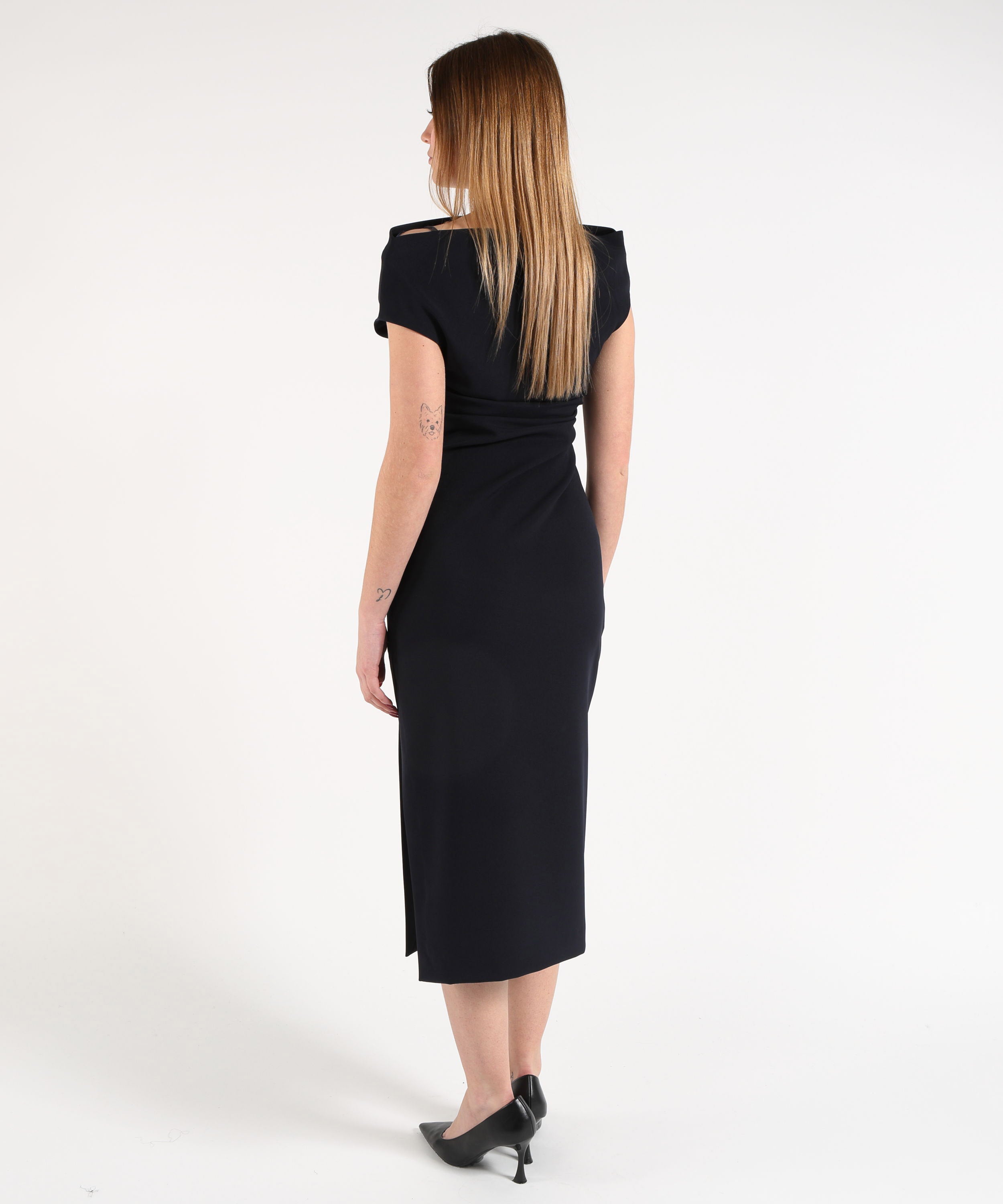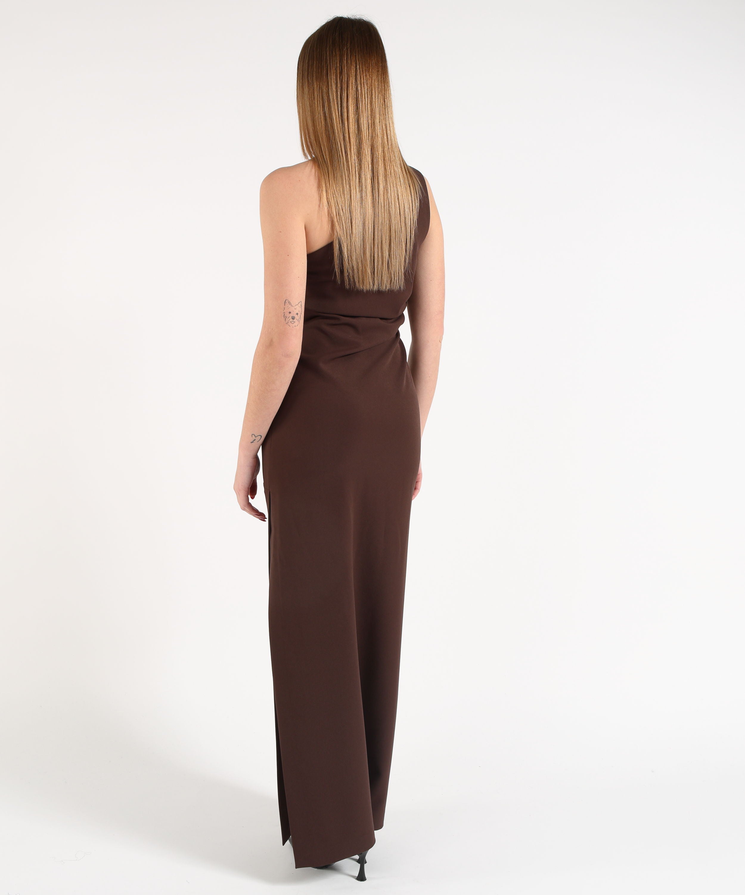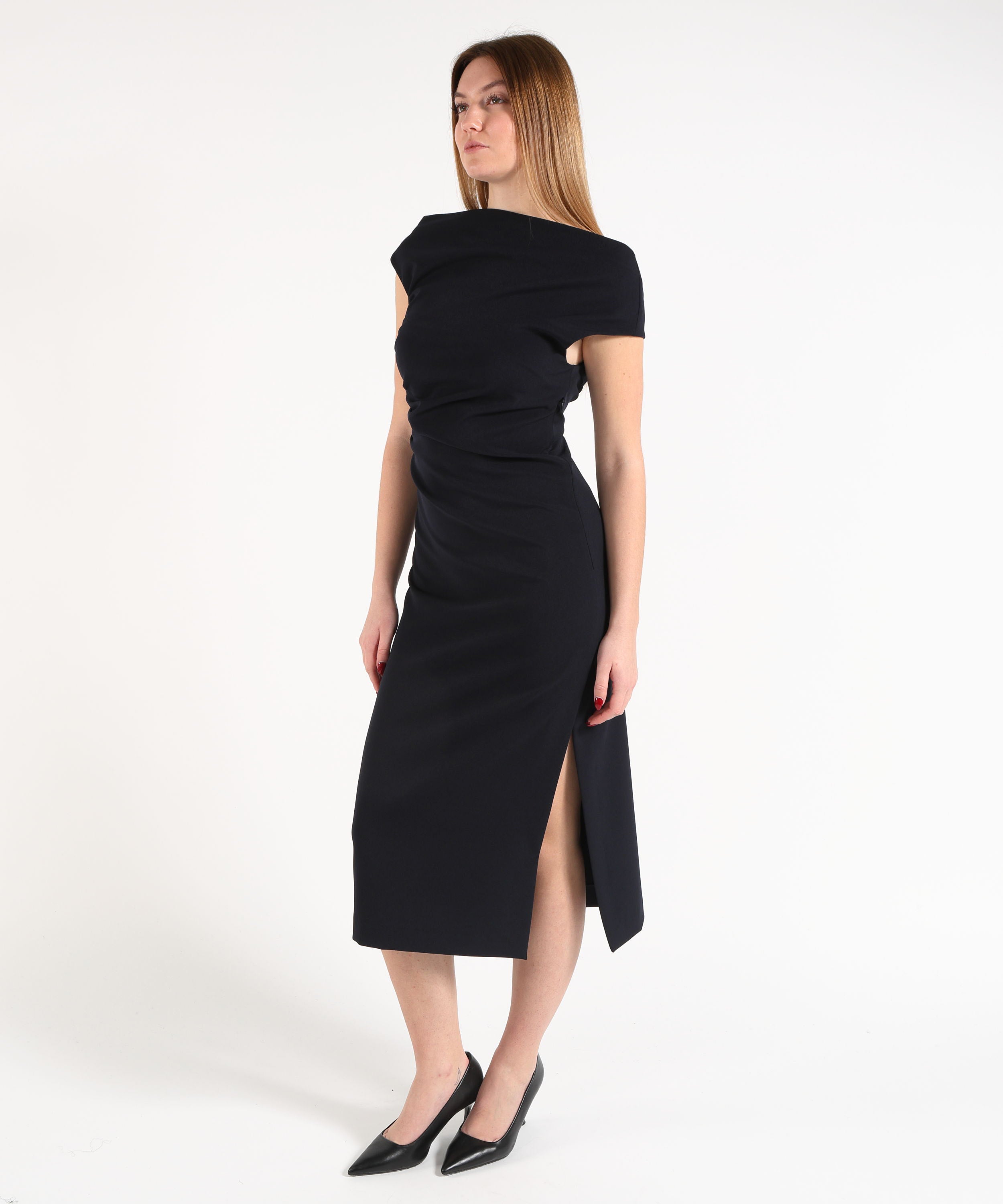 P.A.R.O.S.H. Tubino Lungo Smanicato con Scollo Omerale e Plissettatura Laterale