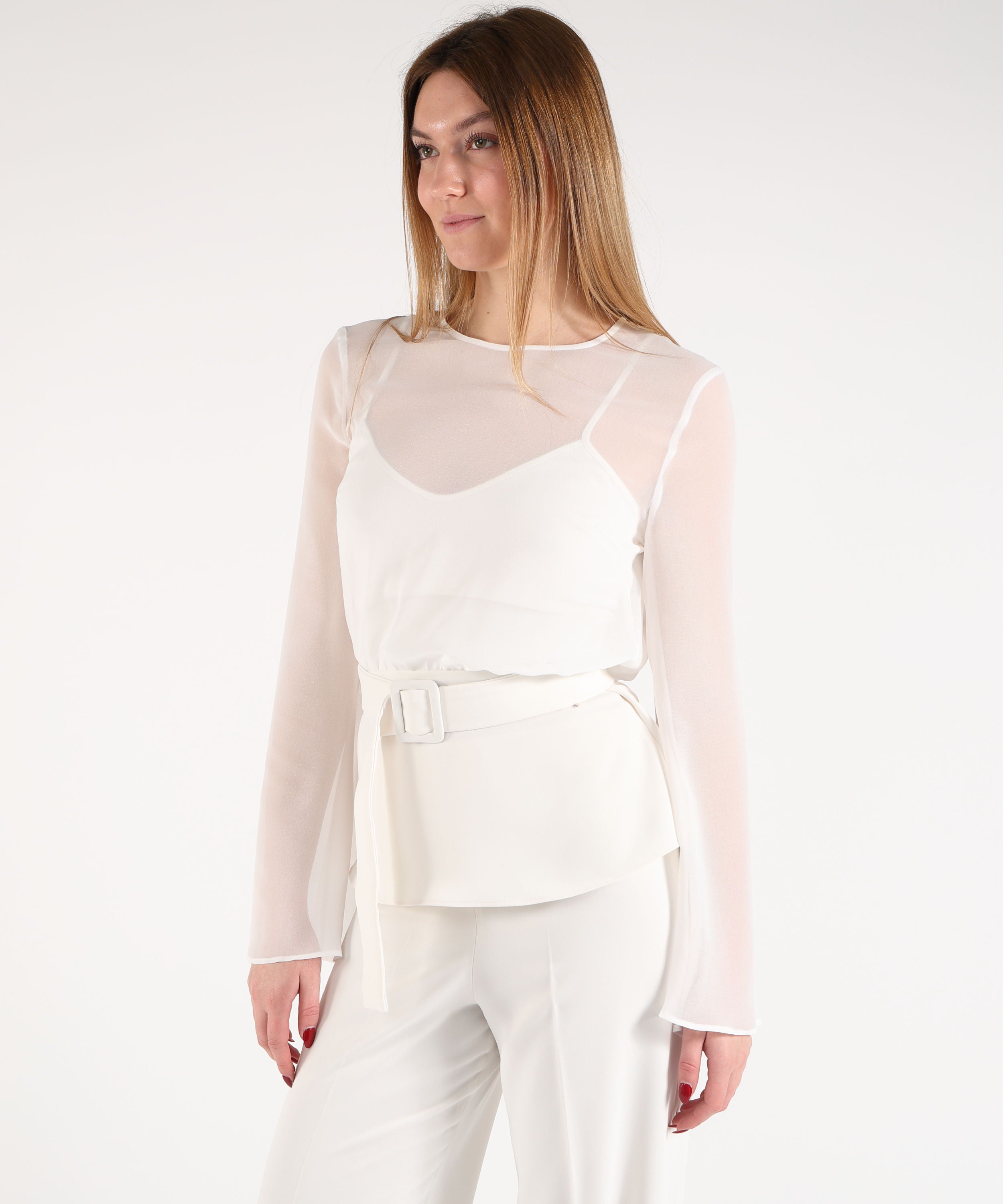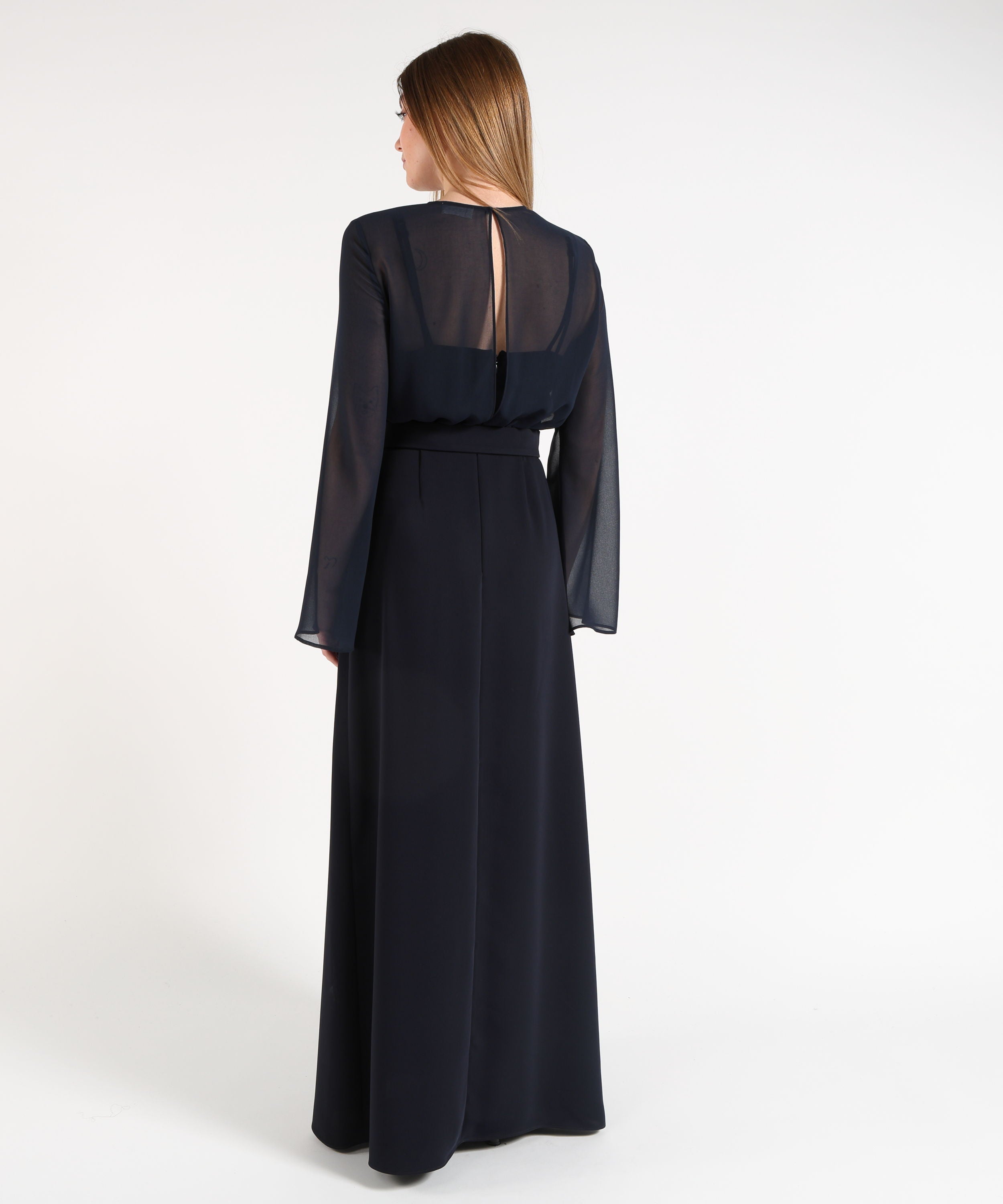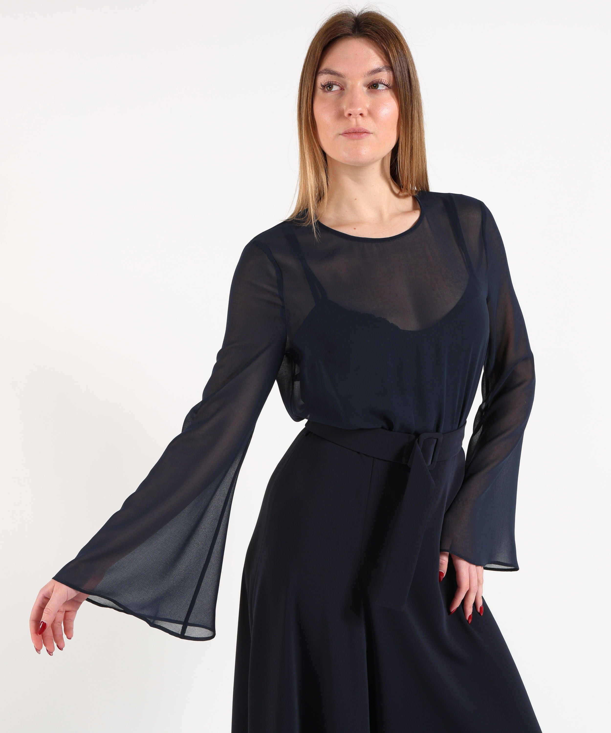P.A.R.O.S.H. Tubino Lungo Smanicato con Scollo Omerale e Plissettatura Laterale