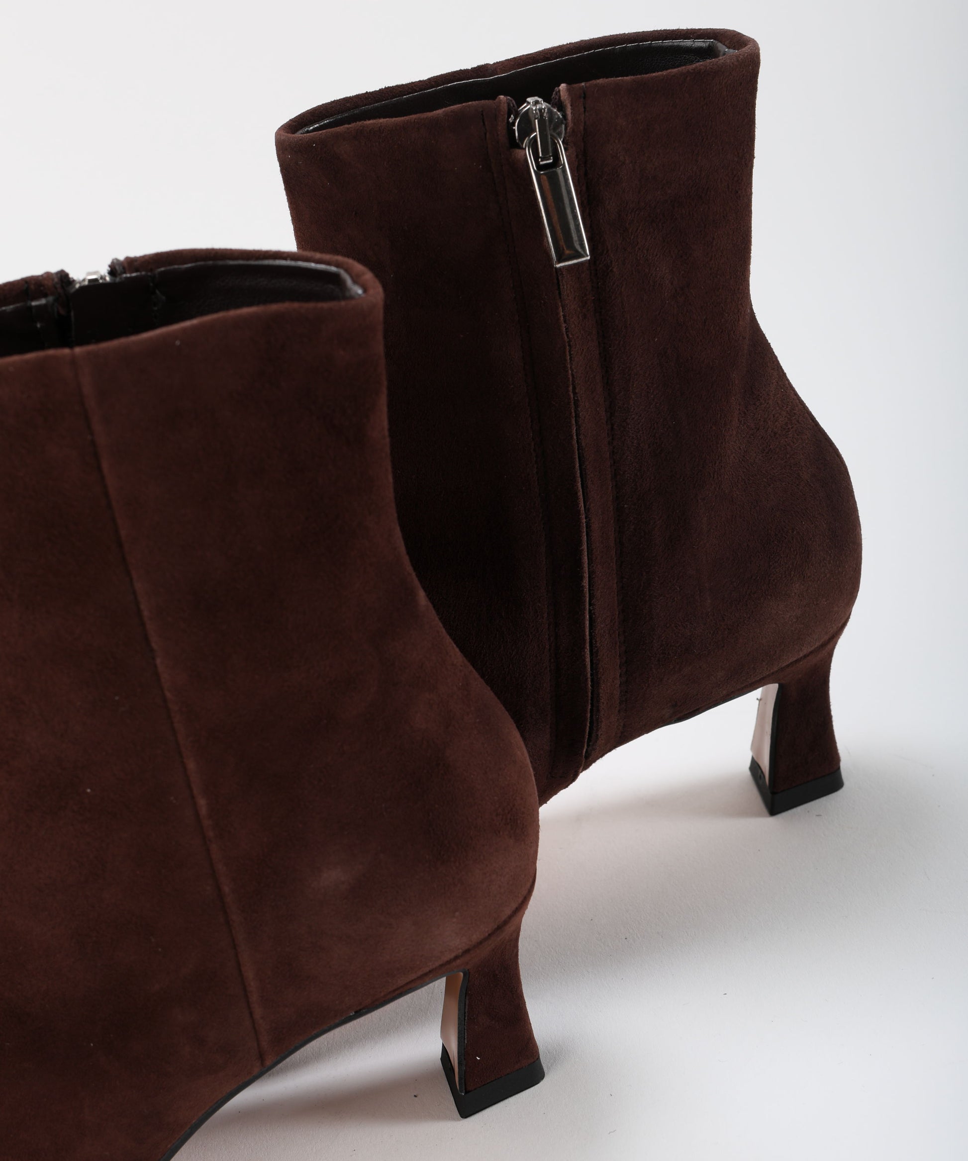 Tronchetti in camoscio donna – Modello elegante con punta sfilata e zip laterale per una calzata pratica. Interno in pelle e tessuto, tacco rivestito 6 cm comodo e femminile, suola in gomma resistente. Perfetti da abbinare a look sia casual che raffinati.