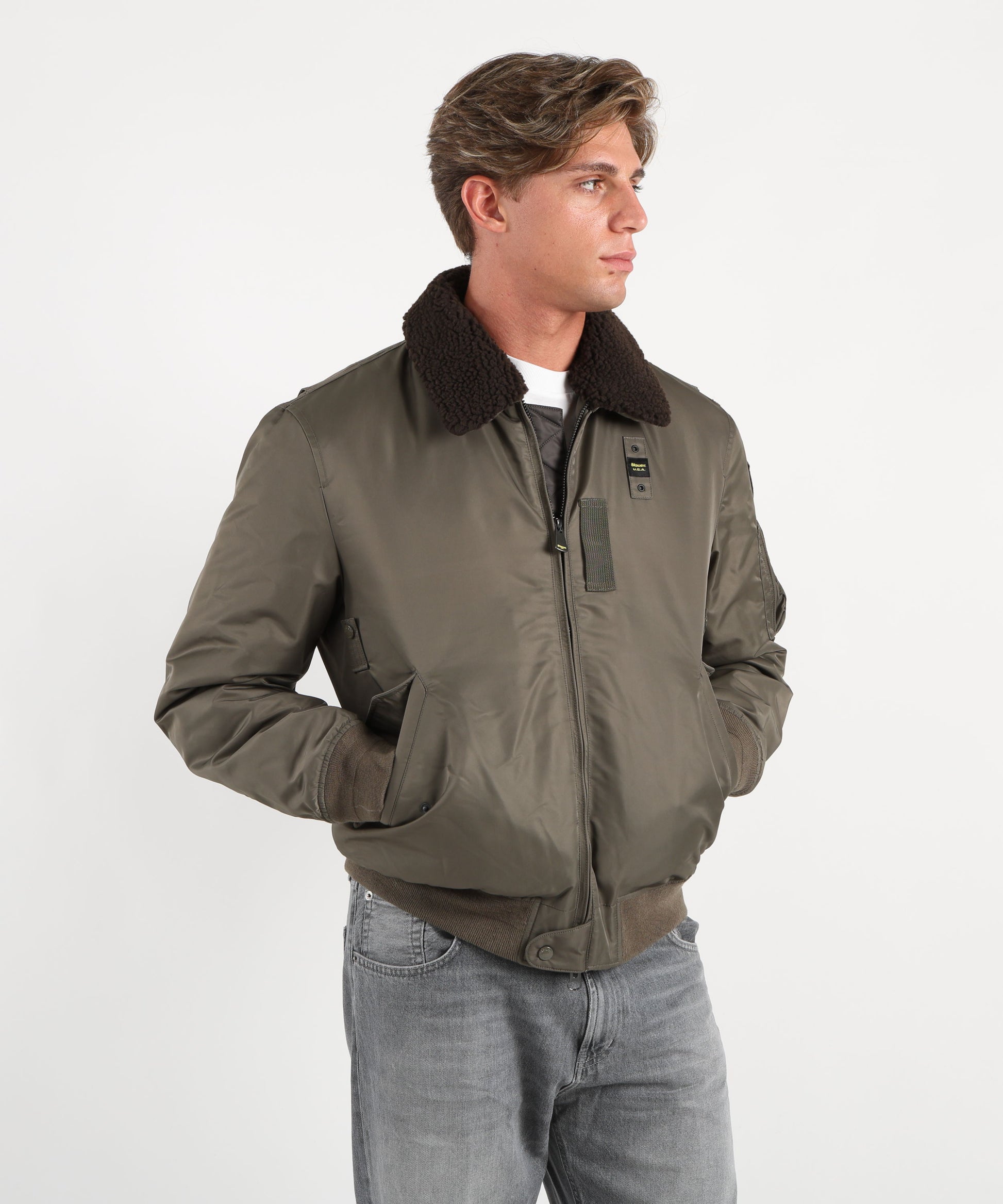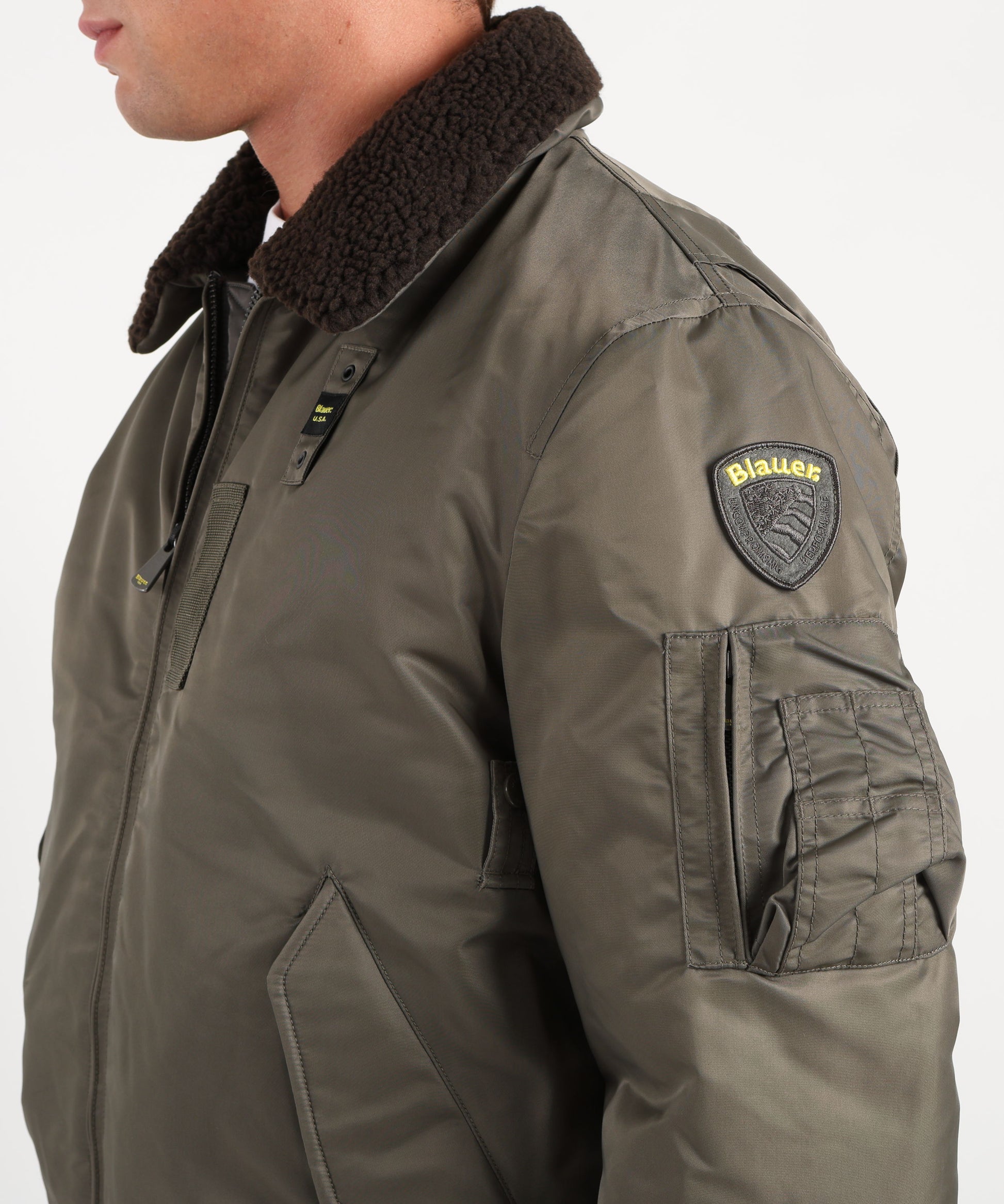 Bomber in poliammide idrorepellente con imbottitura sostenibile Sorona Aura, calda e traspirante. Collo in pelliccia sintetica removibile, chiusura zip a due vie, tasche laterali e interna con zip. Orlo e polsini in maglia elasticizzata. Logo Blauer sulla manica. Vestibilità regolare.