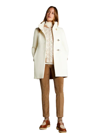 DESCRIZIONE Caratterizzato da un'elegante linea a tulipano e un collo avvolgente, questo cappotto in soffice panno misto lana fonde ispirazione romantica e gusto metropolitano. Chiuso con iconici ganci Fay, presenta tasche a filo e un'etichetta interna col nome del capo. DETTAGLI E COMPOSIZIONE Made in Italy Romantic Coat Fay donna Fitting: regular La modella è alta 180 cm e indossa la taglia S Composizione capo: 80% lana vergine, 20% poliammide, fodera 62% acetato, 38% poliestere Indicazioni di cura e mantenimento incluse