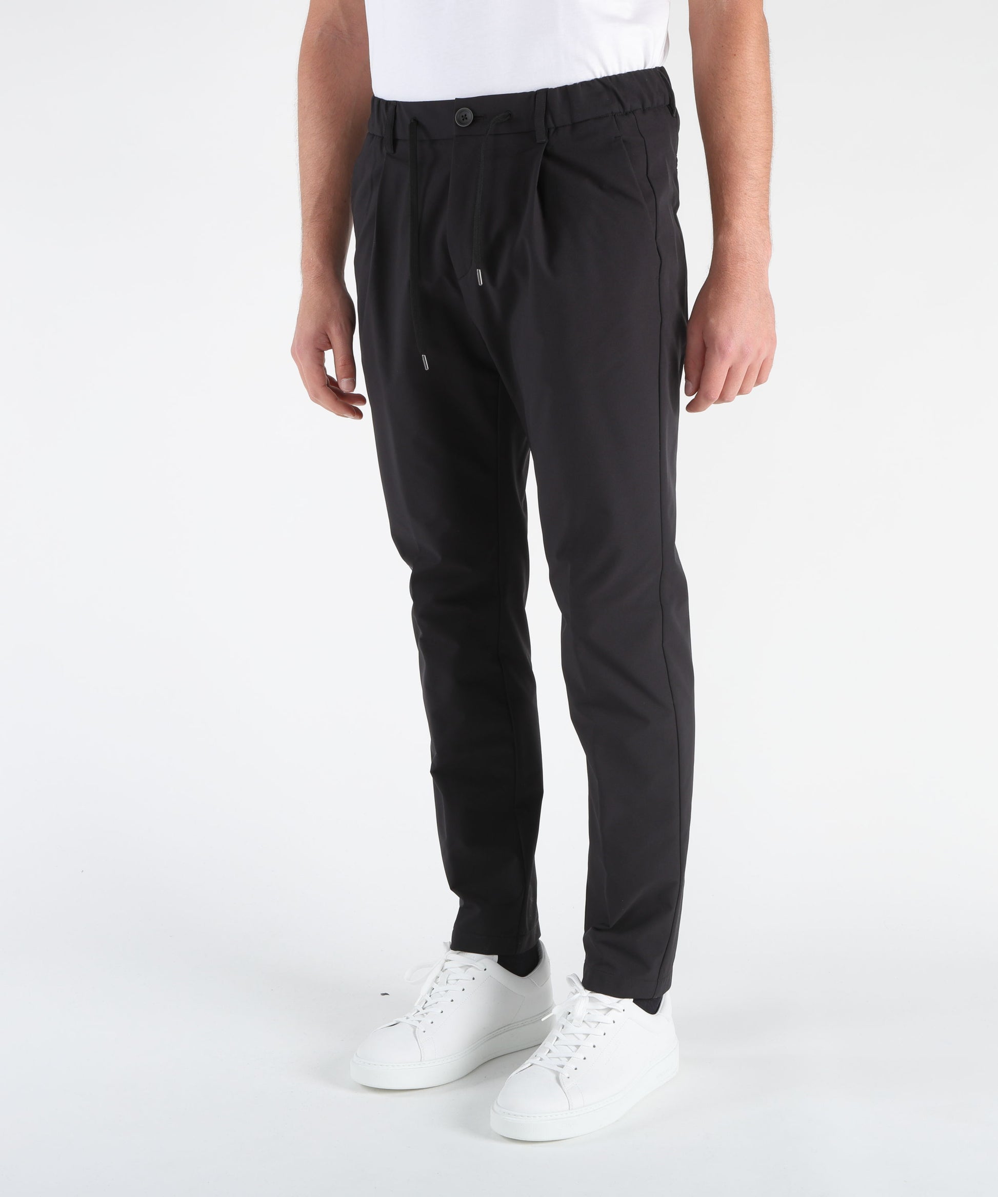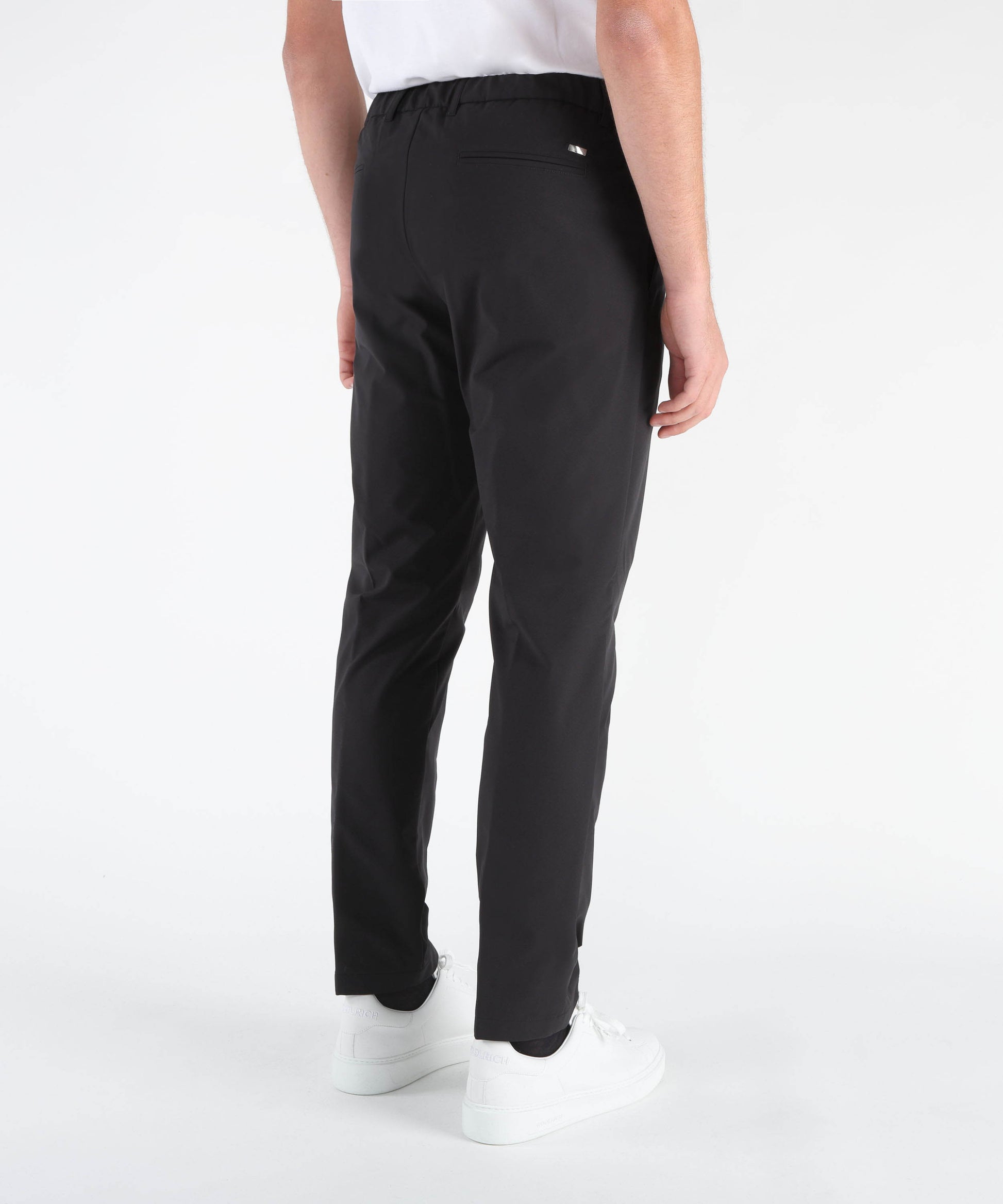 Pantaloni Herno dal design raffinato e confortevole, realizzati in poliestere a doppia trama con superficie antistatica, idrorepellente e piacevole al tatto. Le pieghe frontali e la coulisse elasticizzata in vita garantiscono una vestibilità regolare e confortevole. Completano il modello le tasche alla francese, le tasche a filetto posteriori e il logo Herno in metallo sul retro. Chiusura con zip e bottone coperti.