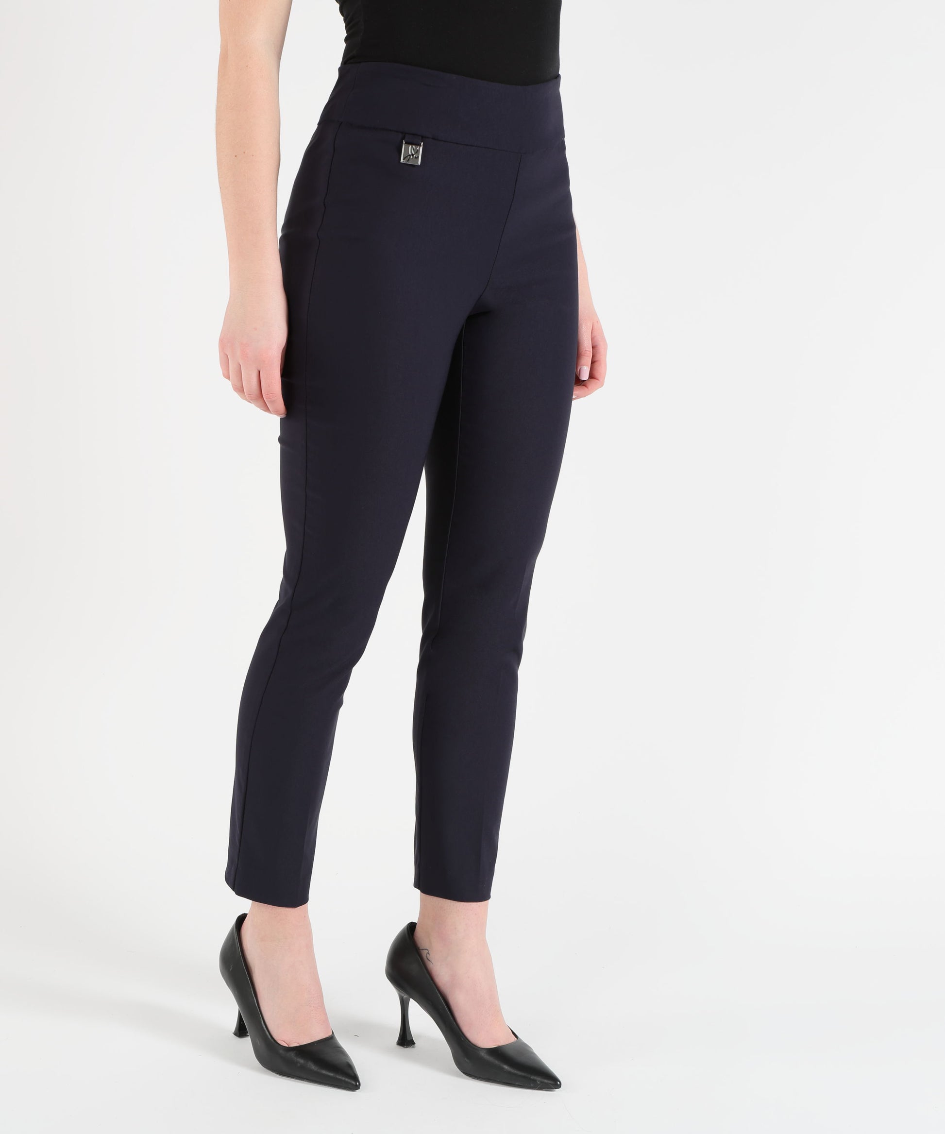 Pantaloni pull-on slim-fit in tessuto millennium, elasticizzato e strutturato per valorizzare la silhouette. Dotati di fascia sagomata in vita ed etichetta JR sul davanti, uniscono comfort, sostegno ed eleganza in un design essenziale.