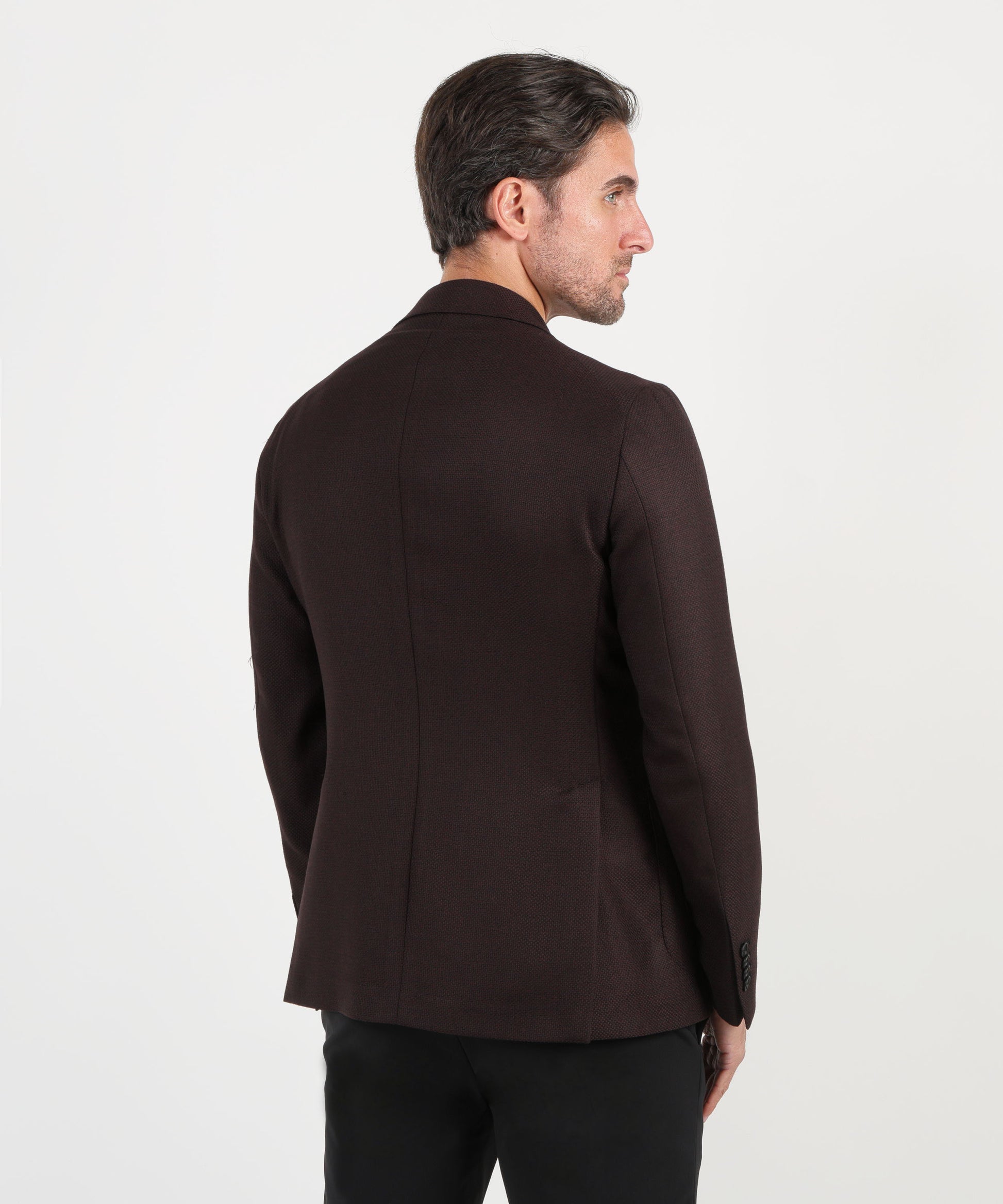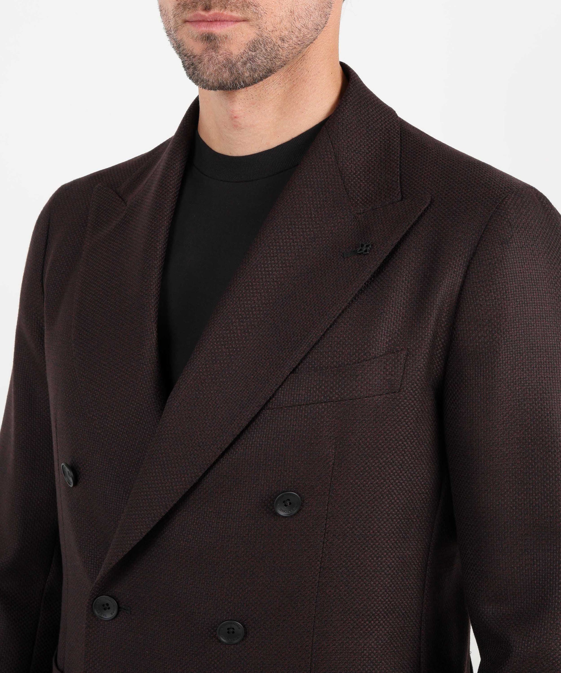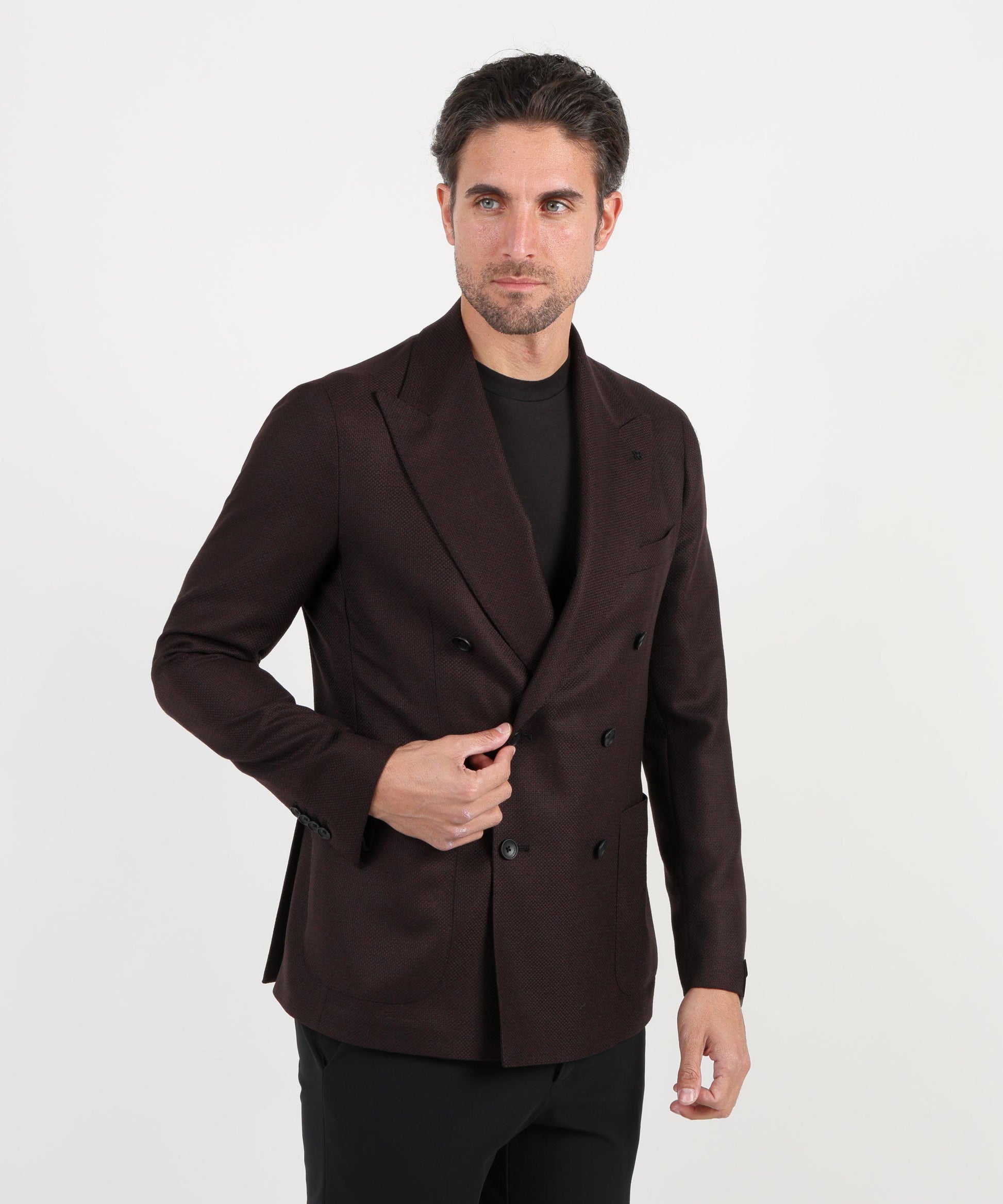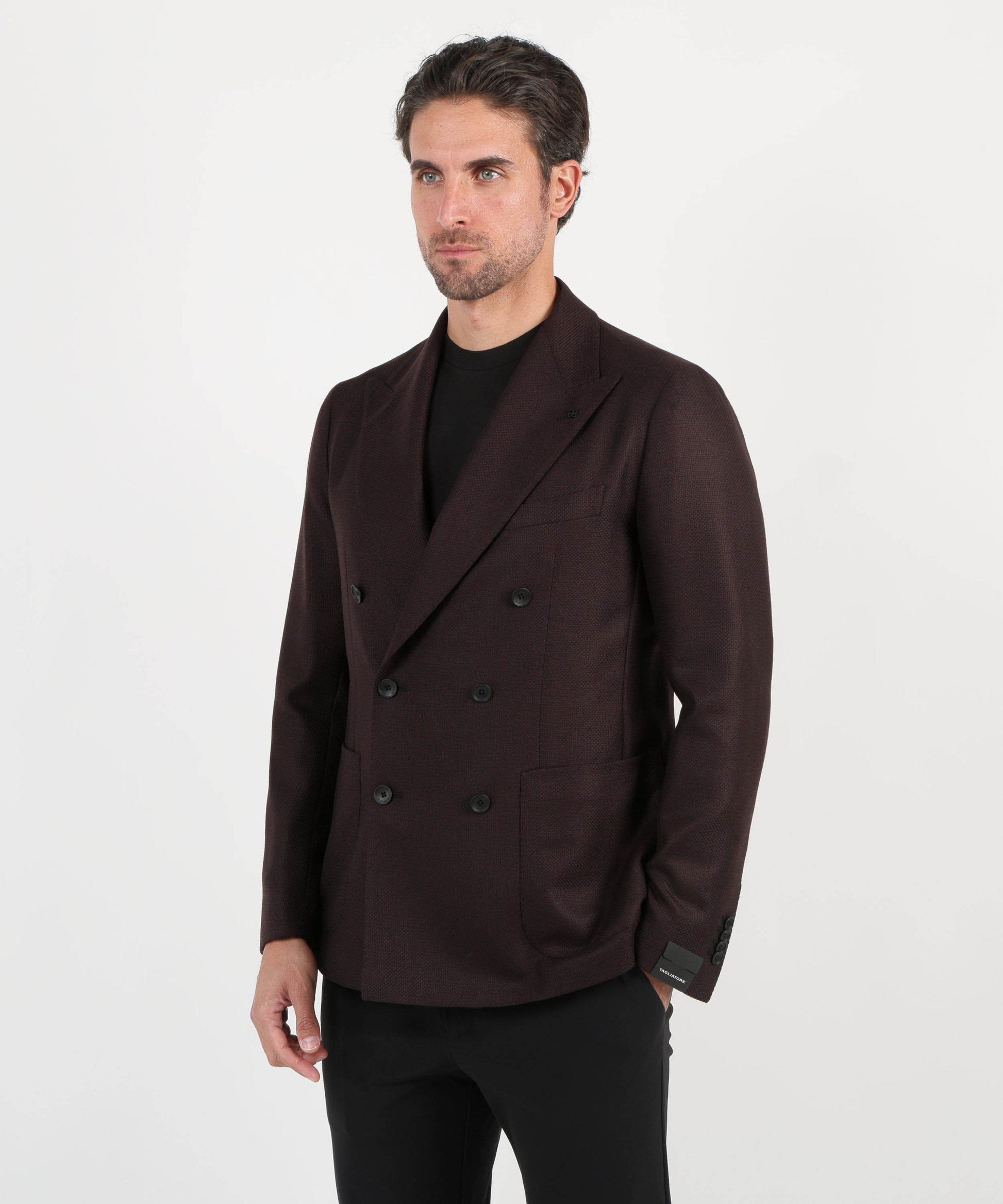 Giacca sfoderata con doppia plancia a sei bottoni e due occhielli. Caratterizzata da due tasche a toppa, taschino normale sul petto e spacchi laterali che assicurano comodità e libertà di movimento. Elegante e versatile, perfetta per look formali e smart casual.