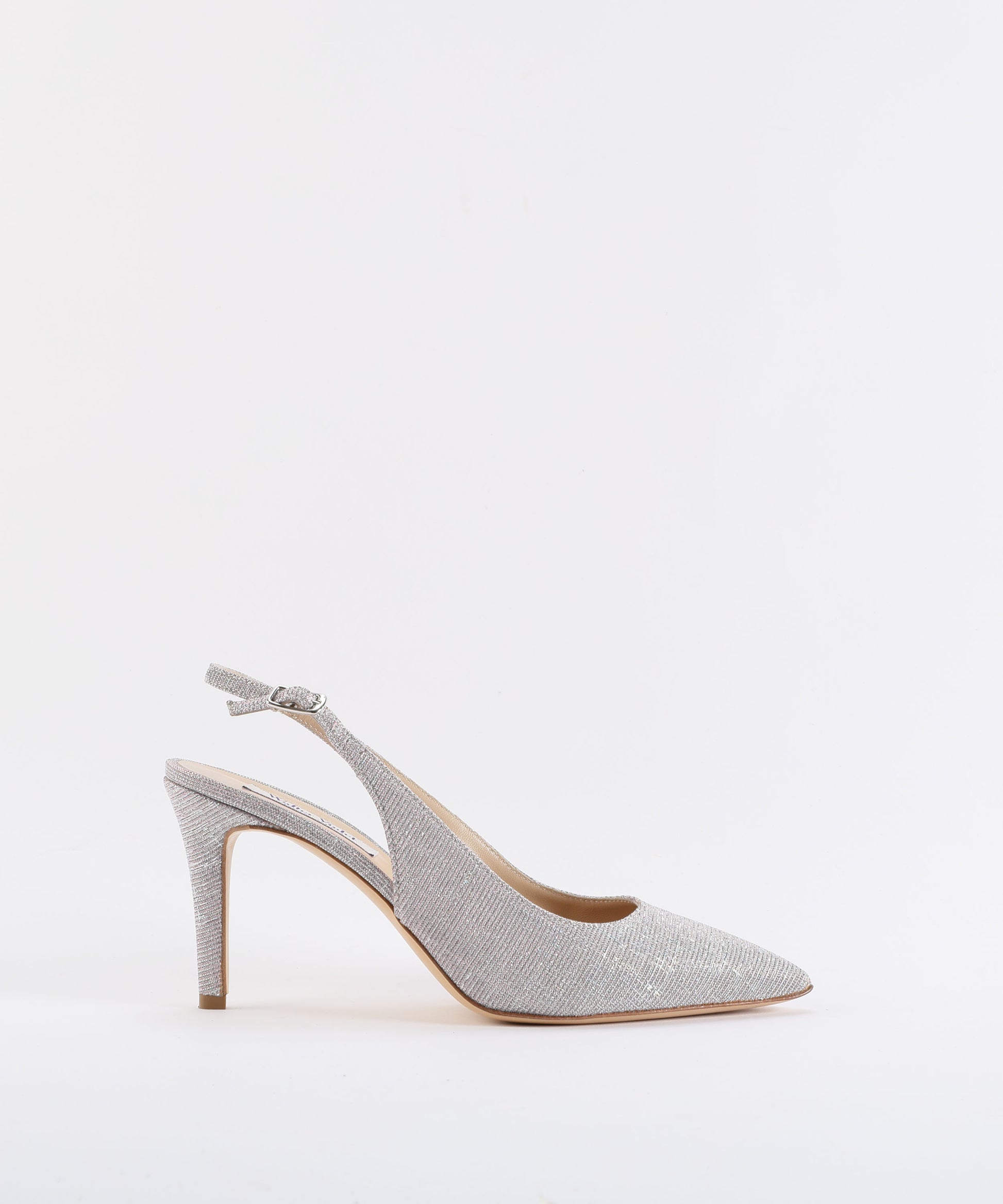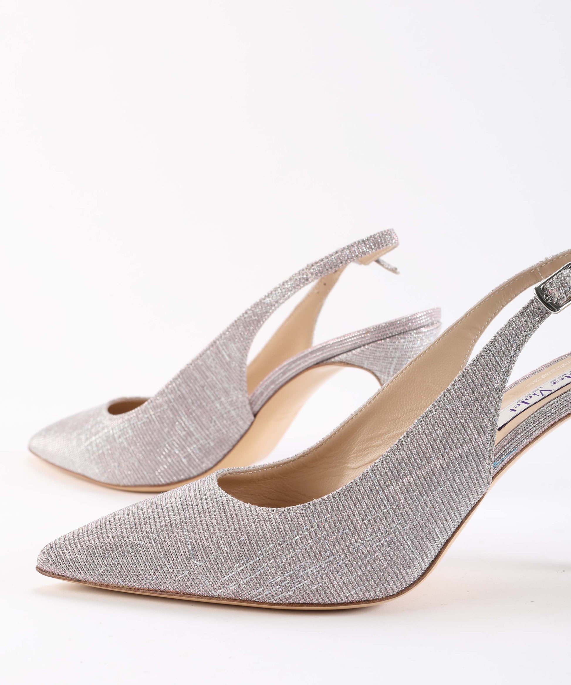 Chanel con tacco 8 cm in vero cuoio e vera pelle laminata oro cangiante. Dotata di cinturino regolabile e tacco in tinta, unisce eleganza e comfort, perfetta per un look sofisticato e raffinato.