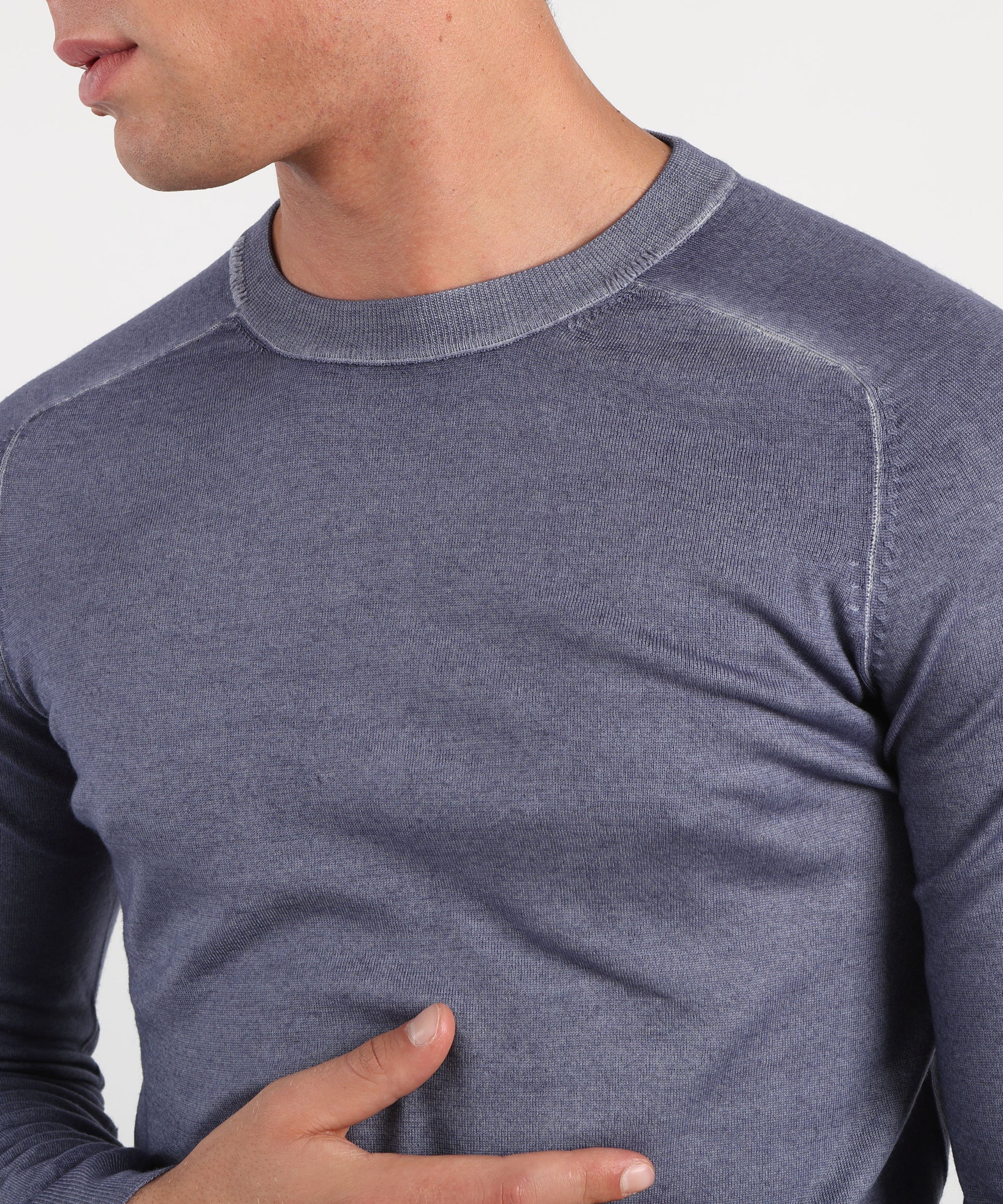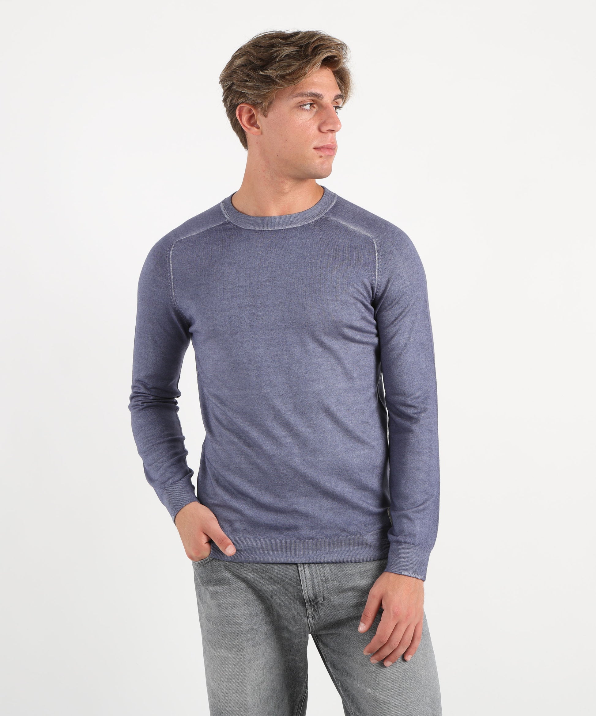 Maglia girocollo tinto in capo con maniche raglan, realizzata in filato morbido e confortevole. La lavorazione speciale del capo tinto dona sfumature uniche e leggermente vissute, rendendo ogni pezzo diverso dall’altro. Il design essenziale con collo, polsi e fondo a costine la rende perfetta per un look casual ma ricercato, ideale da abbinare sia a jeans che a pantaloni dal taglio sartoriale.