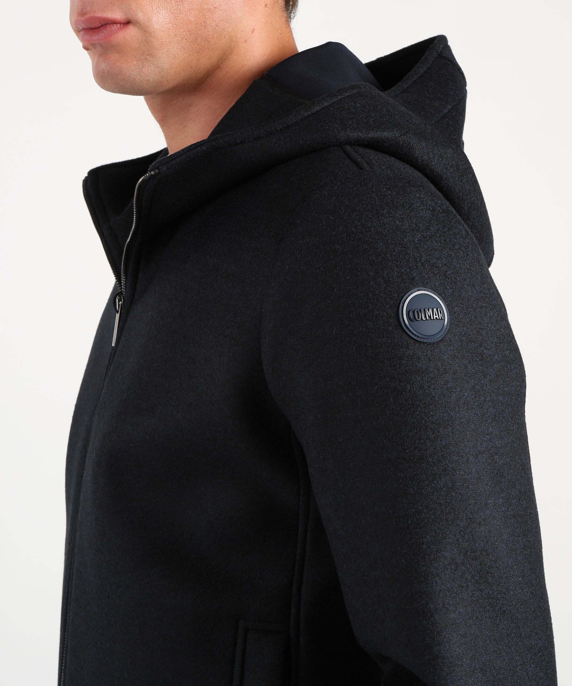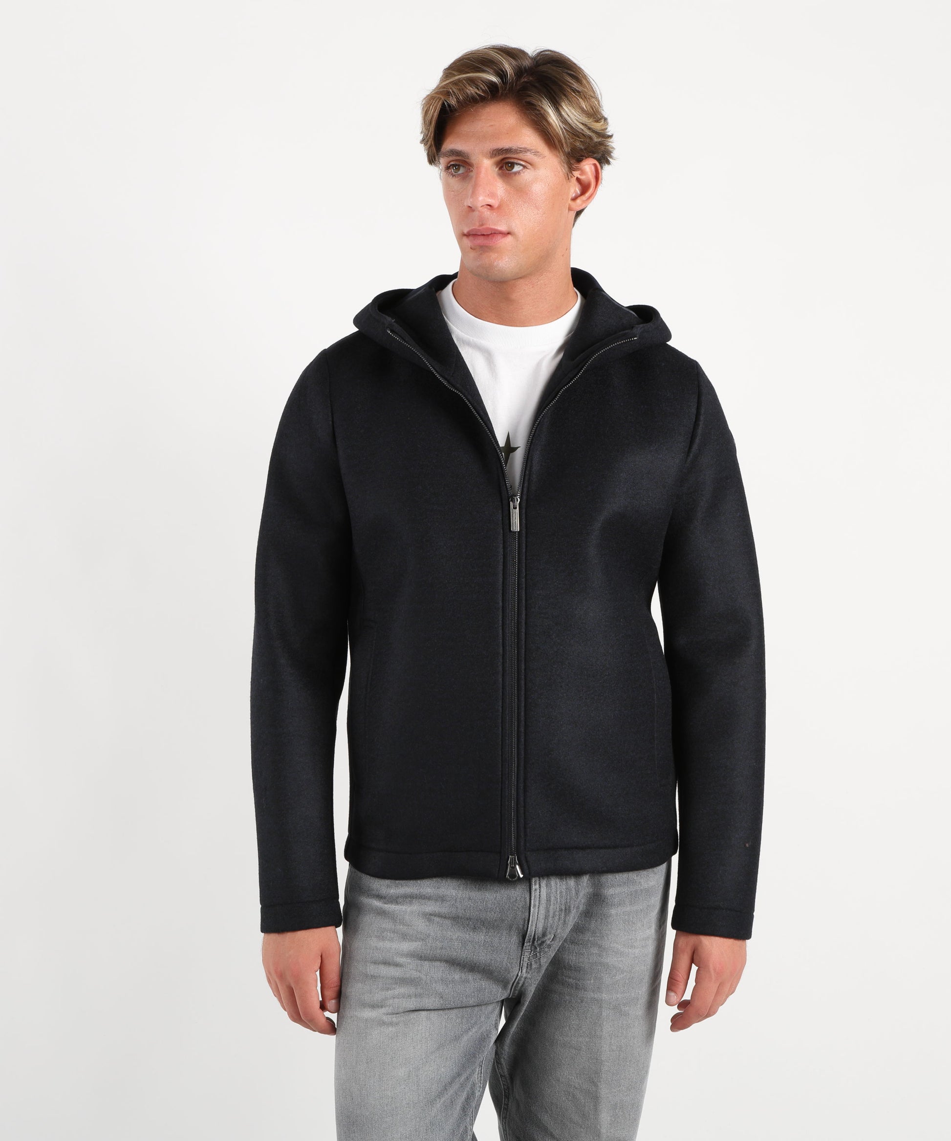 Giubbino in neoprene con cappuccio e taglio dritto, chiusura full zip e doppie tasche con zip. Stile minimal e moderno, perfetto per look casual e sportivi.