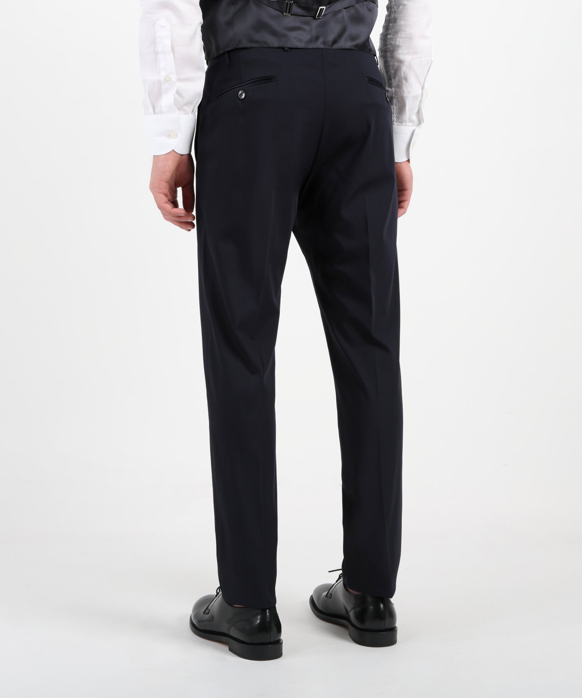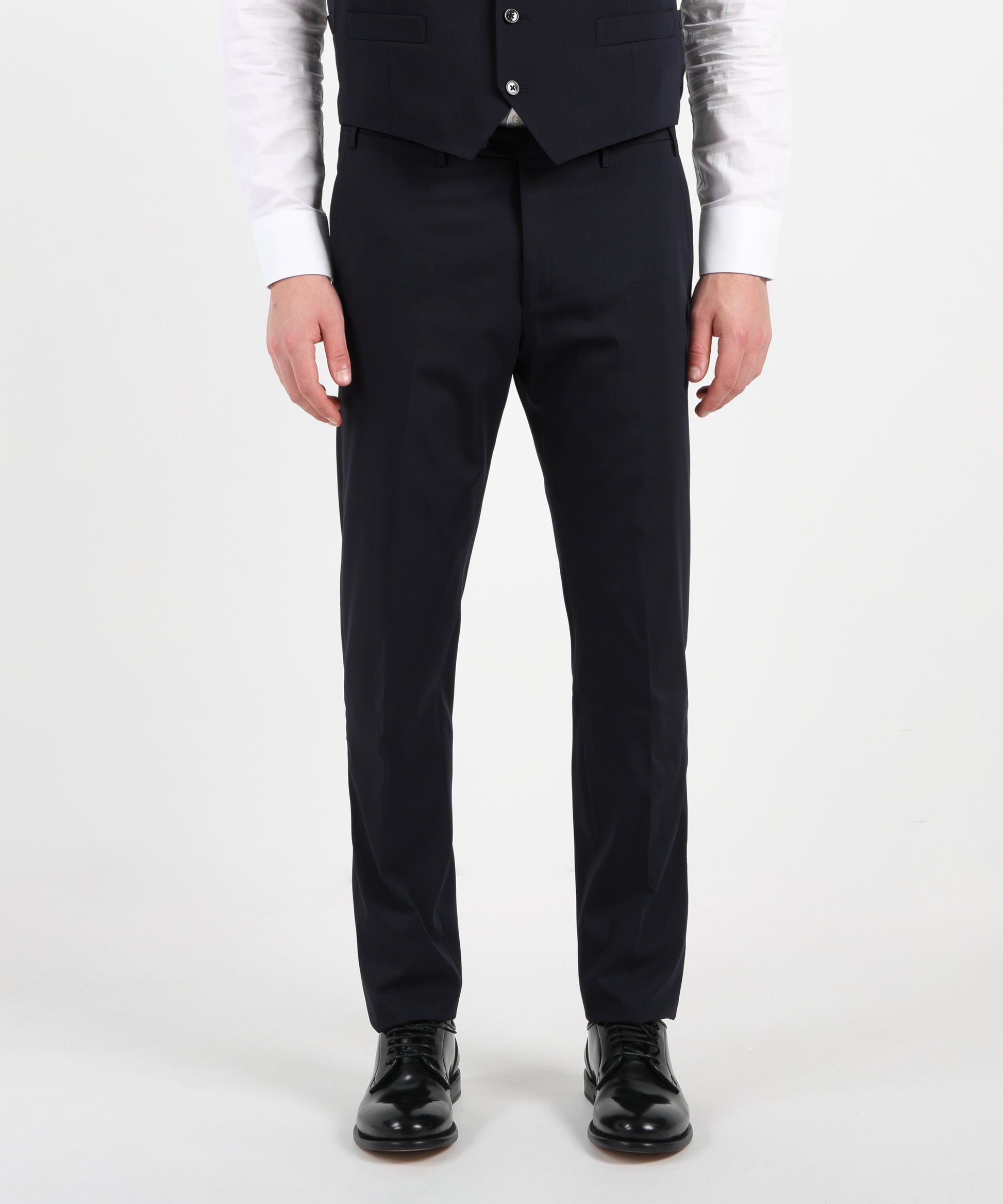 Il gilet coordinato a 4 bottoni aggiunge un ulteriore livello di eleganza, ideale per personalizzare il look anche senza giacca. I pantaloni, dalla linea moderna senza pences, presentano una vestibilità regolare con tasche all’americana, per uno stile sobrio ma ricercato.