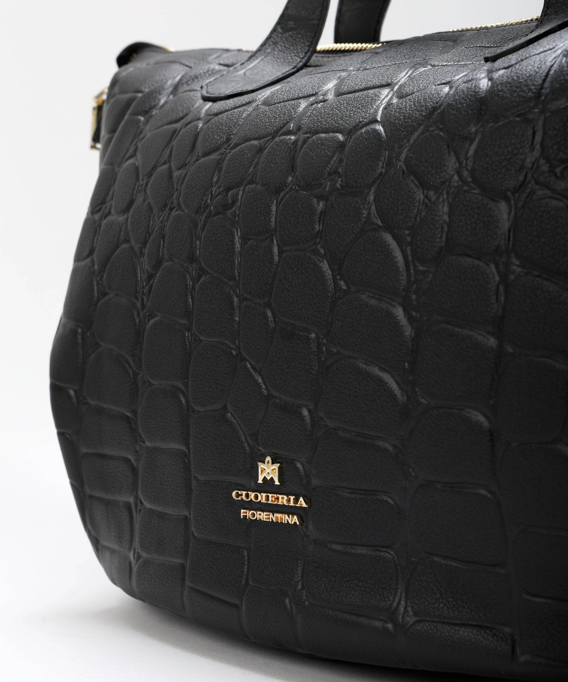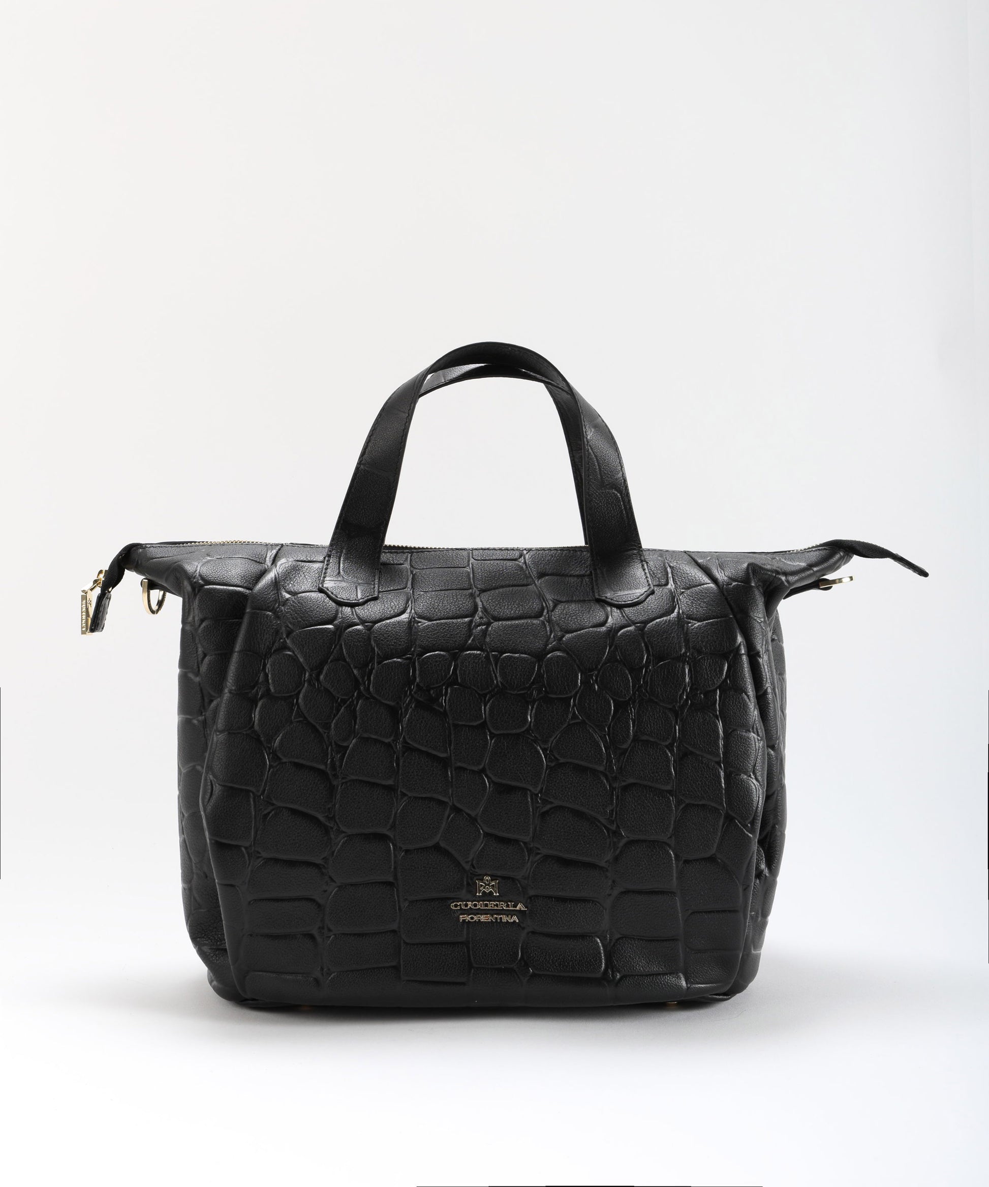 Elegante e versatile, questa borsa a mano è realizzata in pelle effetto tartarugato, che le conferisce un carattere sofisticato e unico. La tracolla in dotazione permette di indossarla comodamente a spalla o a tracolla, adattandosi perfettamente a diverse esigenze quotidiane. Capiente al punto giusto, è ideale per contenere tutti gli oggetti essenziali senza rinunciare allo stile, rendendola perfetta per lavoro, tempo libero o serate eleganti.
