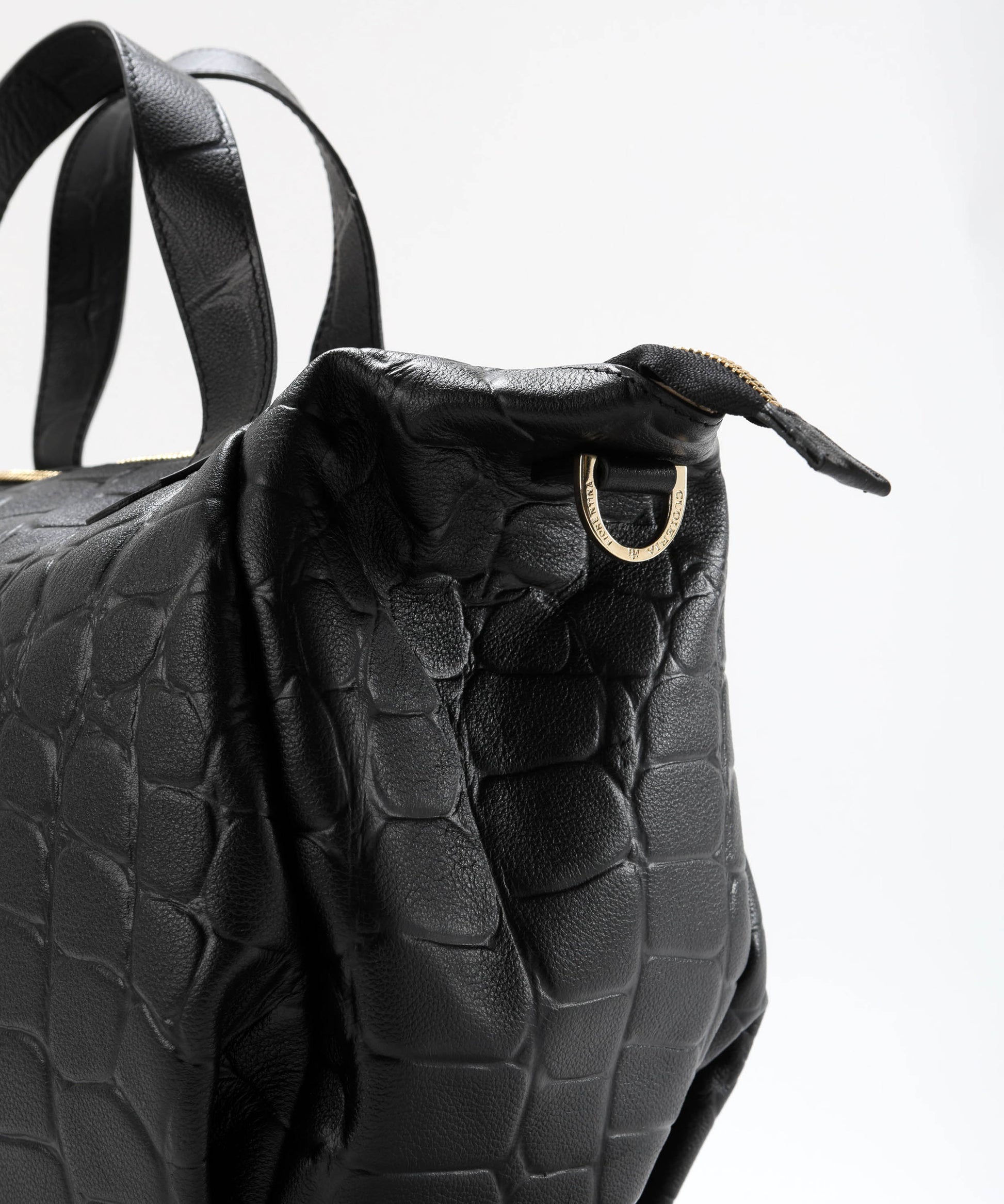 Borsa a mano in pelle effetto tartarugato, con tracolla rimovibile e regolabile per uno stile versatile e raffinato.