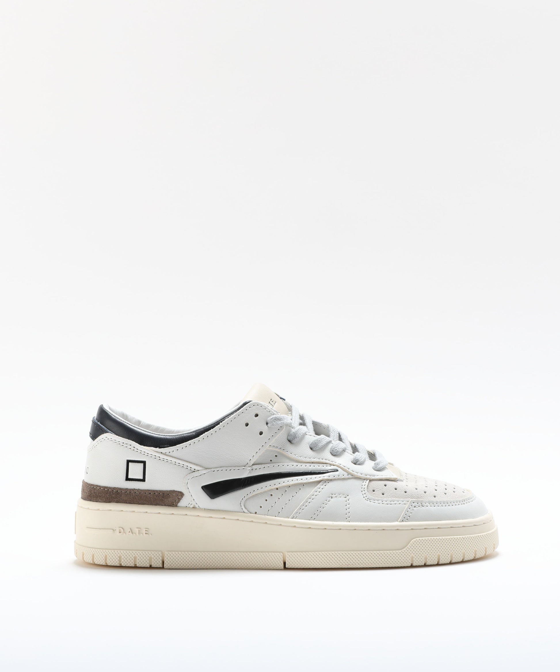 Le D.A.T.E. Torneo reinterpretano le iconiche basketball shoes con un design contemporaneo e confortevole. La tomaia in pelle bianca è arricchita da inserti in suede beige sulla punta e dettagli in pelle blu a contrasto, mentre la punta forata garantisce traspirabilità e freschezza durante tutta la giornata.