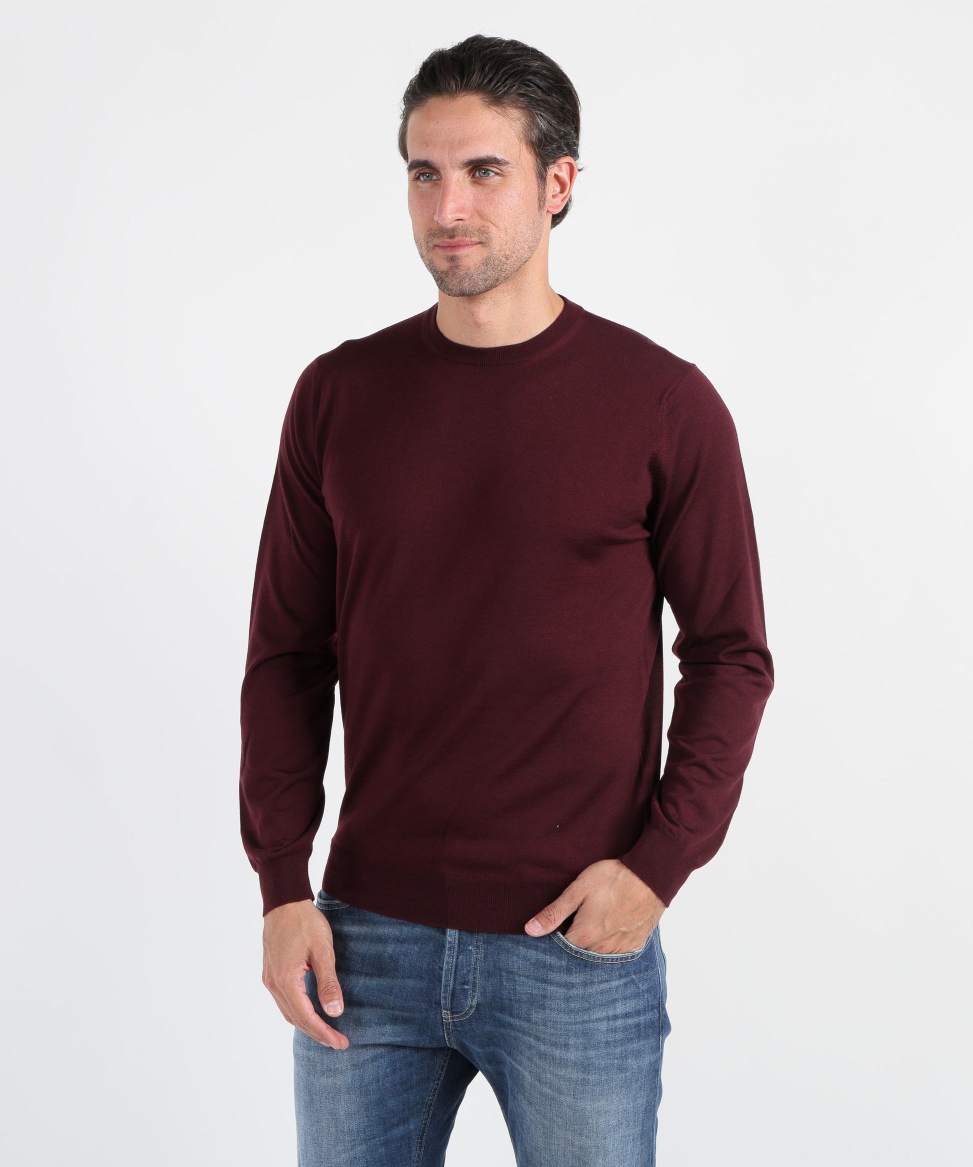 Maglia girocollo in lana finezza 16, morbida e confortevole, dal design essenziale e versatile per outfit casual o raffinati.