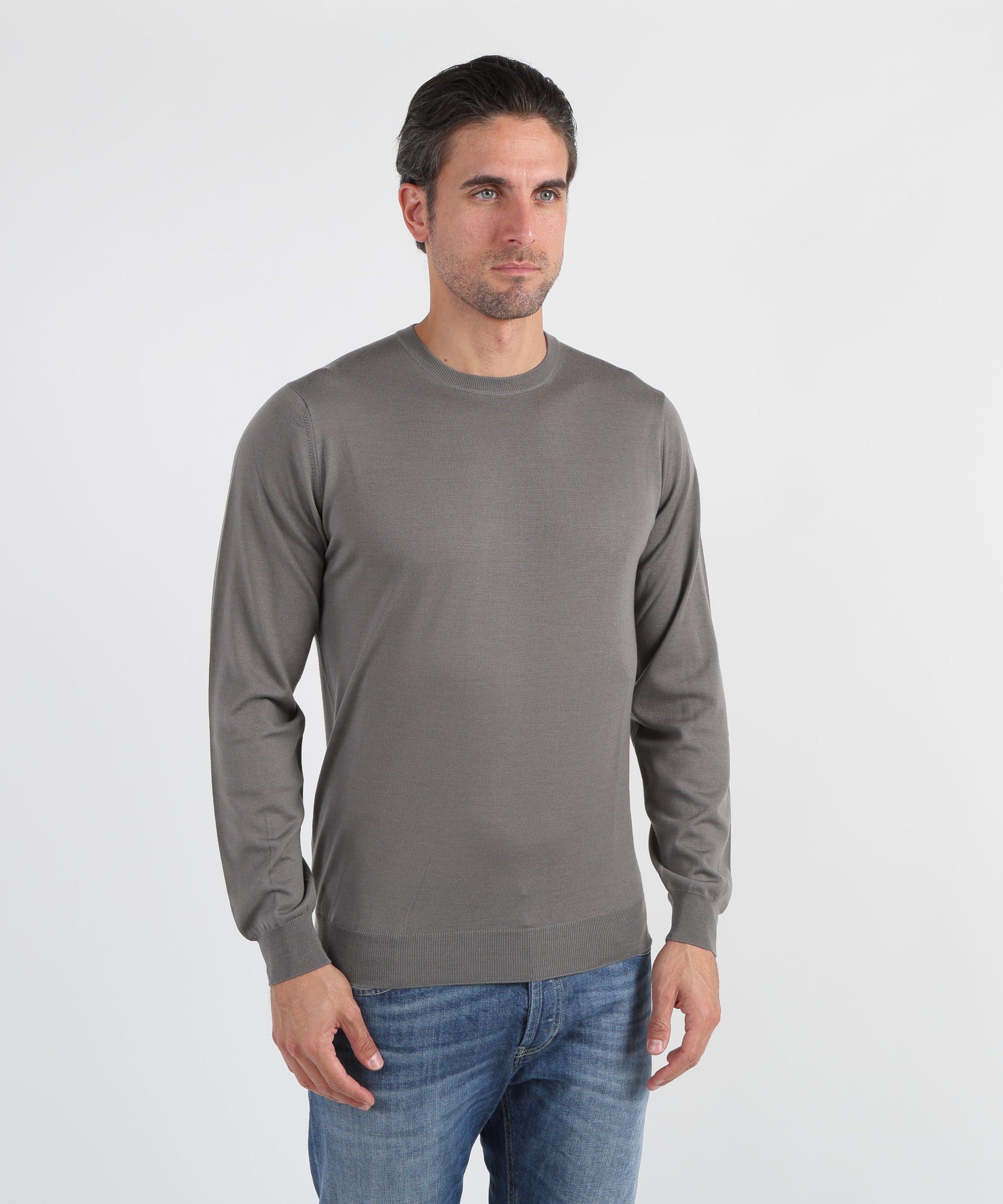 Maglia girocollo in lana finezza 16, morbida e confortevole, dal design essenziale e versatile per outfit casual o raffinati.