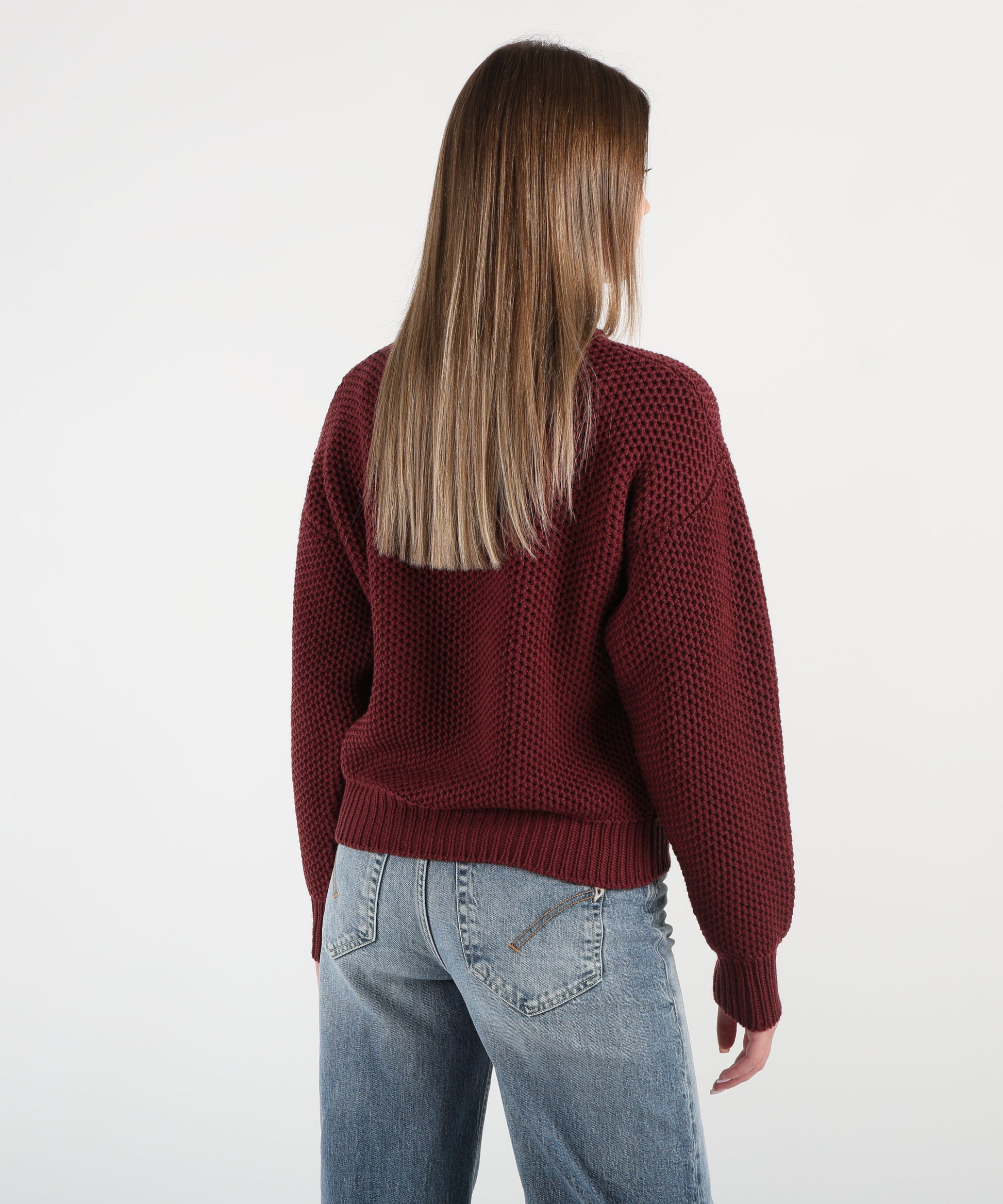 Maglioncino dalla vestibilità regolare che combina comfort e stile in un design essenziale e raffinato. Realizzato con una lavorazione a nido d’ape, presenta una texture tridimensionale che dona profondità e carattere al capo. Lo scollo tondo sottolinea la linea pulita e versatile del modello, rendendolo perfetto sia per look casual che più eleganti. Morbido e piacevole da indossare, è un must-have del guardaroba contemporaneo.