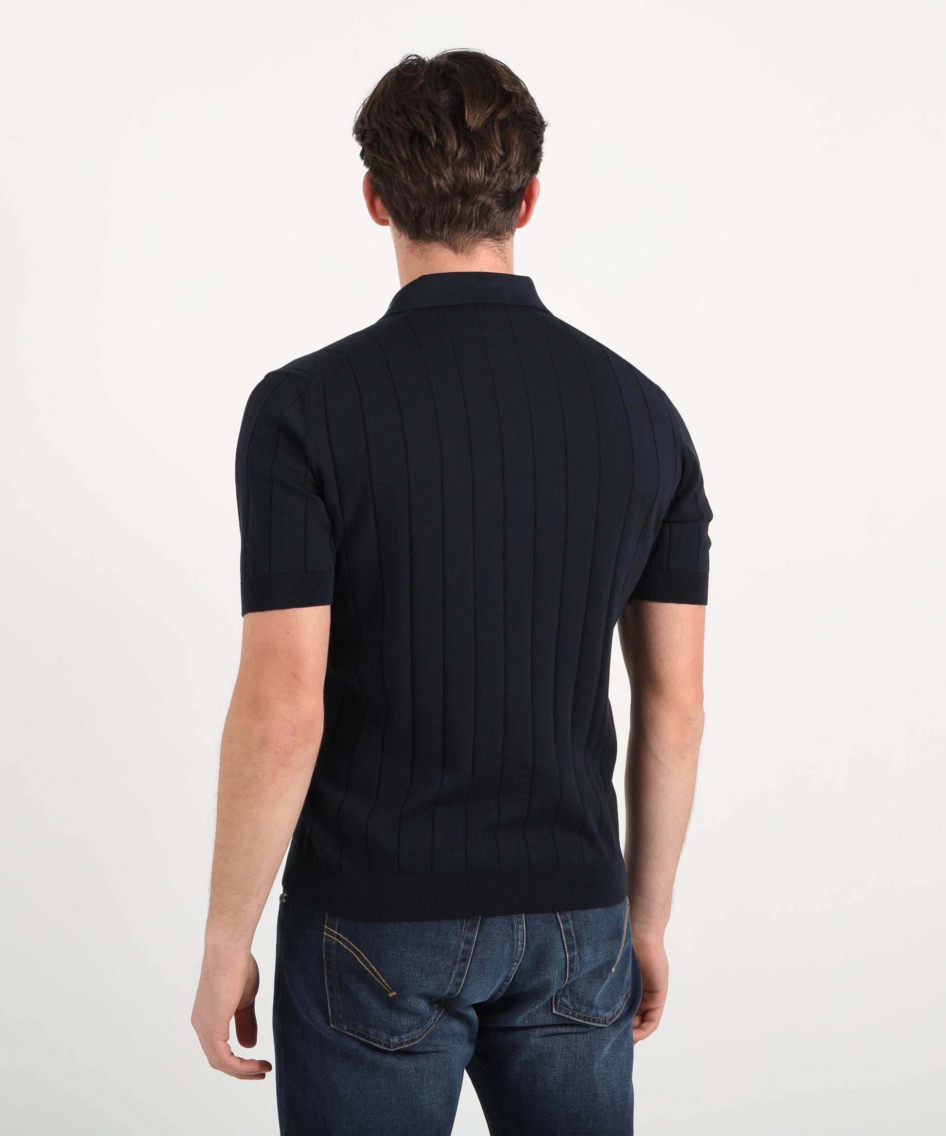 Un capo intramontabile rivisitato con un tocco moderno: questa polo a manica corta è realizzata in crêpe cotton con lavorazione a costa larga, che dona struttura e carattere al tessuto. La chiusura a tre bottoni aggiunge un tocco classico, mentre la finta molla inserita dona un effetto leggermente elasticizzato per un comfort ottimale e una vestibilità regolare.