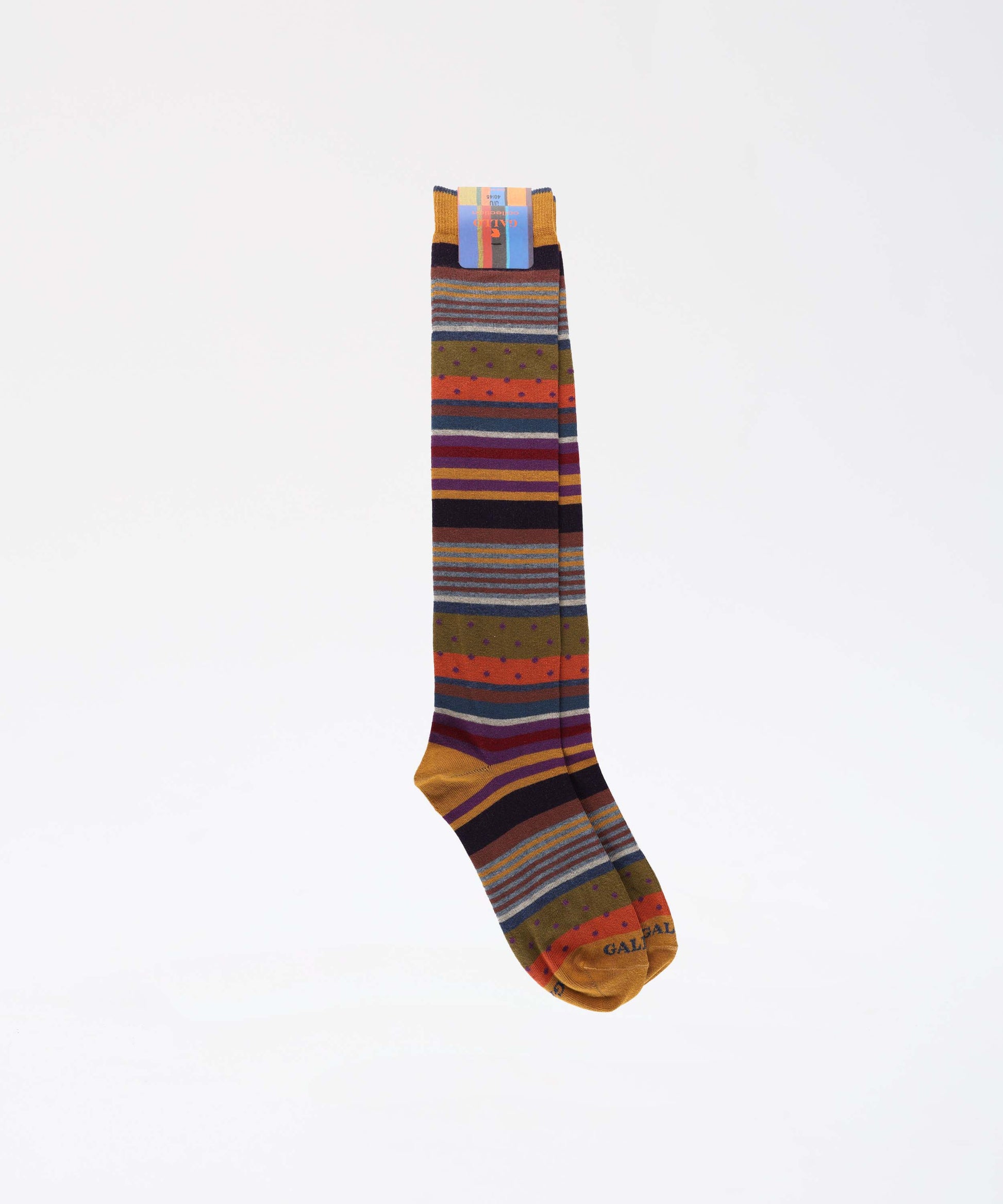 Calze lunghe da uomo realizzate in Italia in cotone. Molto morbide al tatto, create per una persona dinamica che non rinuncia ad un dettaglio di stile. La divertente fantasia che mixa righe e pois nei toni del rosso le rende originali ma riconoscibili. Si adattano ad un look casual, stravagante o anche formale.