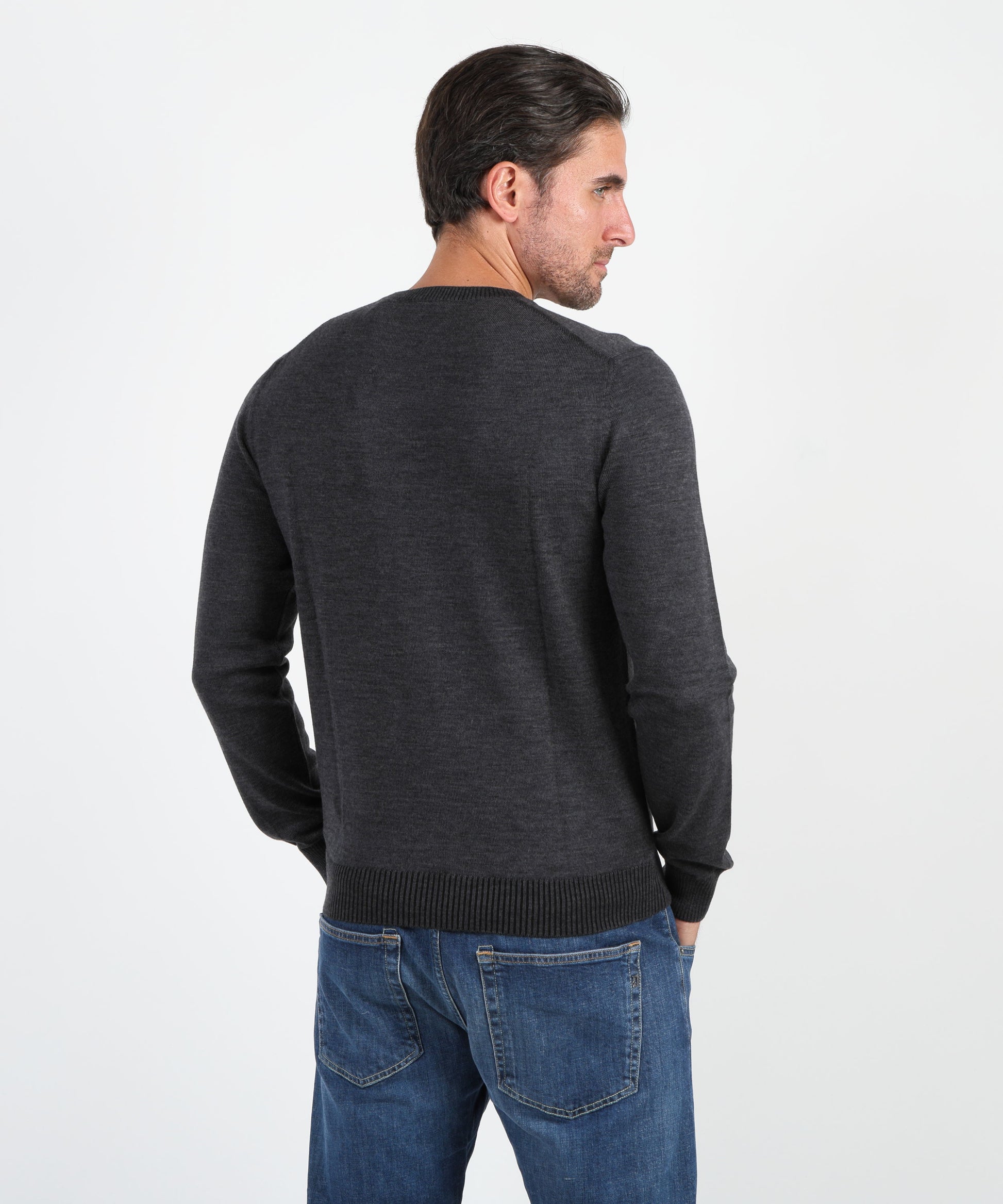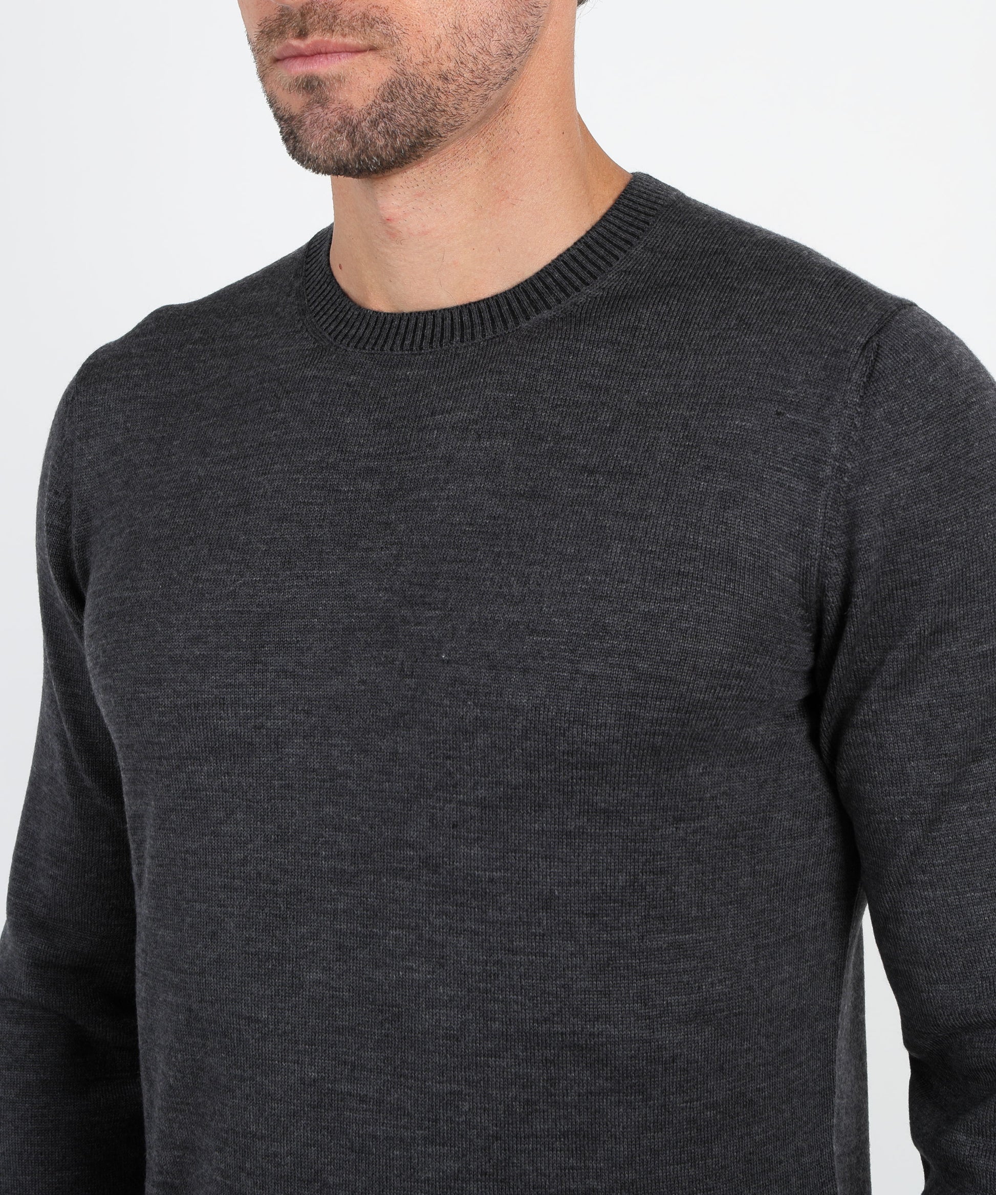Maglia girocollo da uomo realizzata in pura lana, caratterizzata da una tinta unita classica e una vestibilità regolare. Il design essenziale è valorizzato da finiture a coste su collo, polsi e fondo, che assicurano comfort e tenuta. Un capo intramontabile, perfetto da indossare da solo o sotto giacche e cappotti per un look pulito e raffinato.