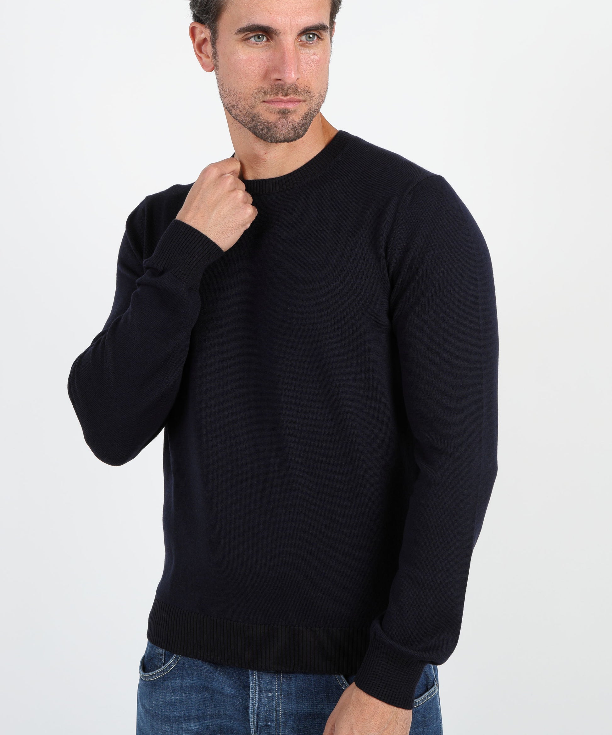 Maglia girocollo da uomo realizzata in pura lana, caratterizzata da una tinta unita classica e una vestibilità regolare. Il design essenziale è valorizzato da finiture a coste su collo, polsi e fondo, che assicurano comfort e tenuta. Un capo intramontabile, perfetto da indossare da solo o sotto giacche e cappotti per un look pulito e raffinato.
