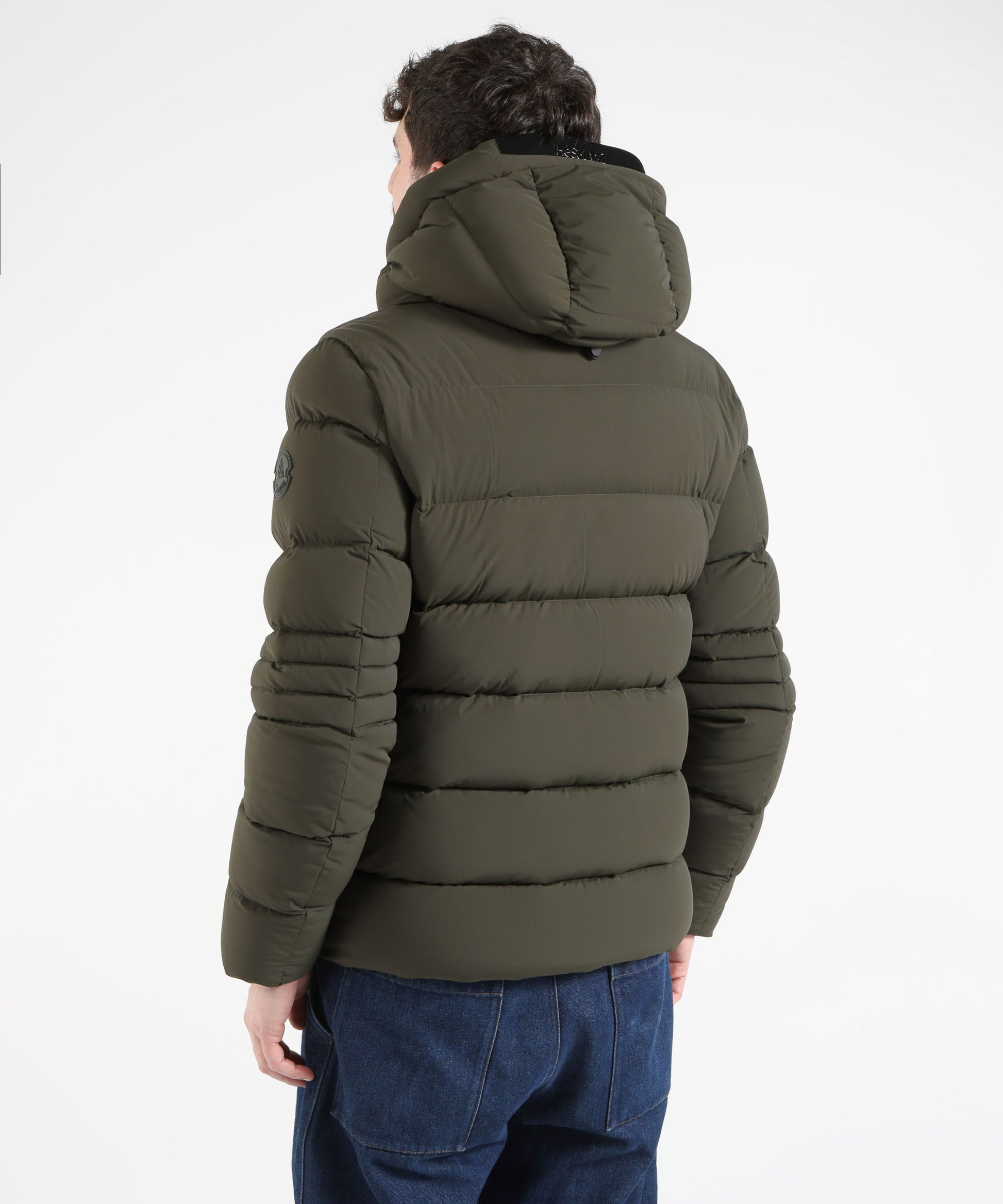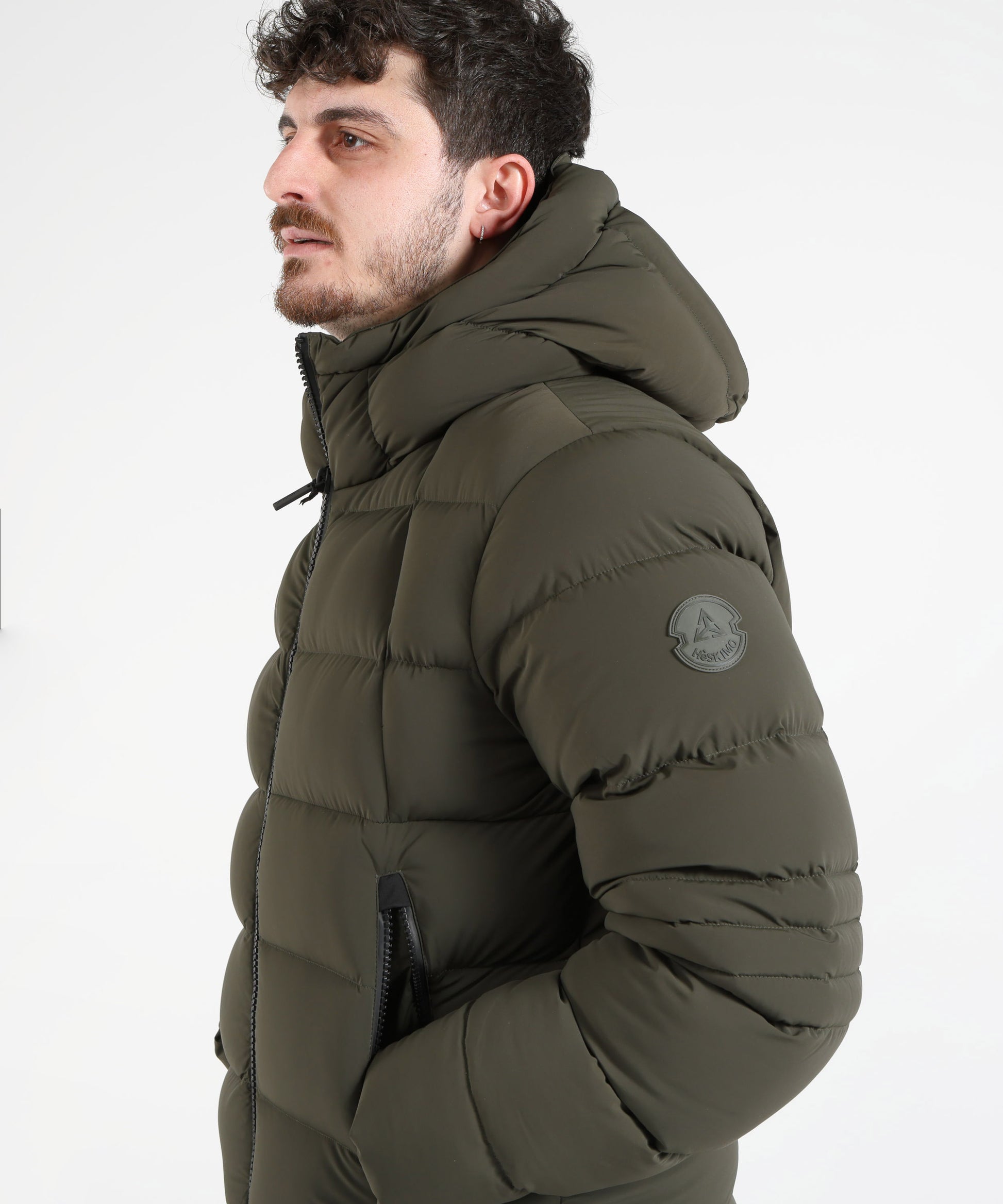 Giubbotto corto con chiusura frontale e zip laterali, cappuccio e stemma applicato sul braccio. Dotato di tasca interna con cerniera, pratico e dal design moderno.