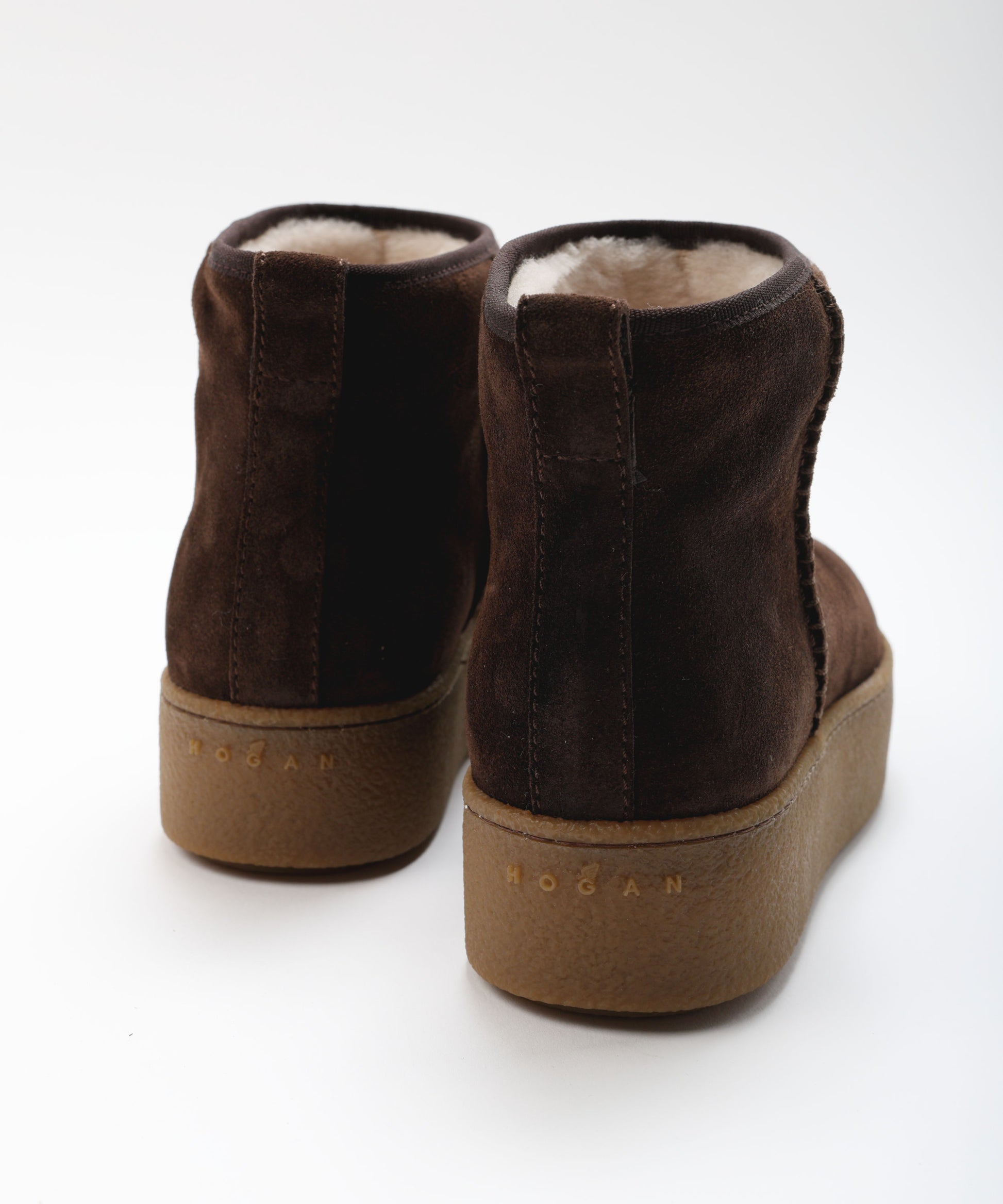 I Hogan Cool reinterpretano lo stile contemporaneo in chiave femminile, unendo linee essenziali a una maxi suola leggera con logo per un’elevazione elegante e distintiva. Realizzati in morbida pelle scamosciata, questi stivaletti sono completati da una soffice fodera in shearling, che garantisce comfort e calore anche nelle giornate più fredde.