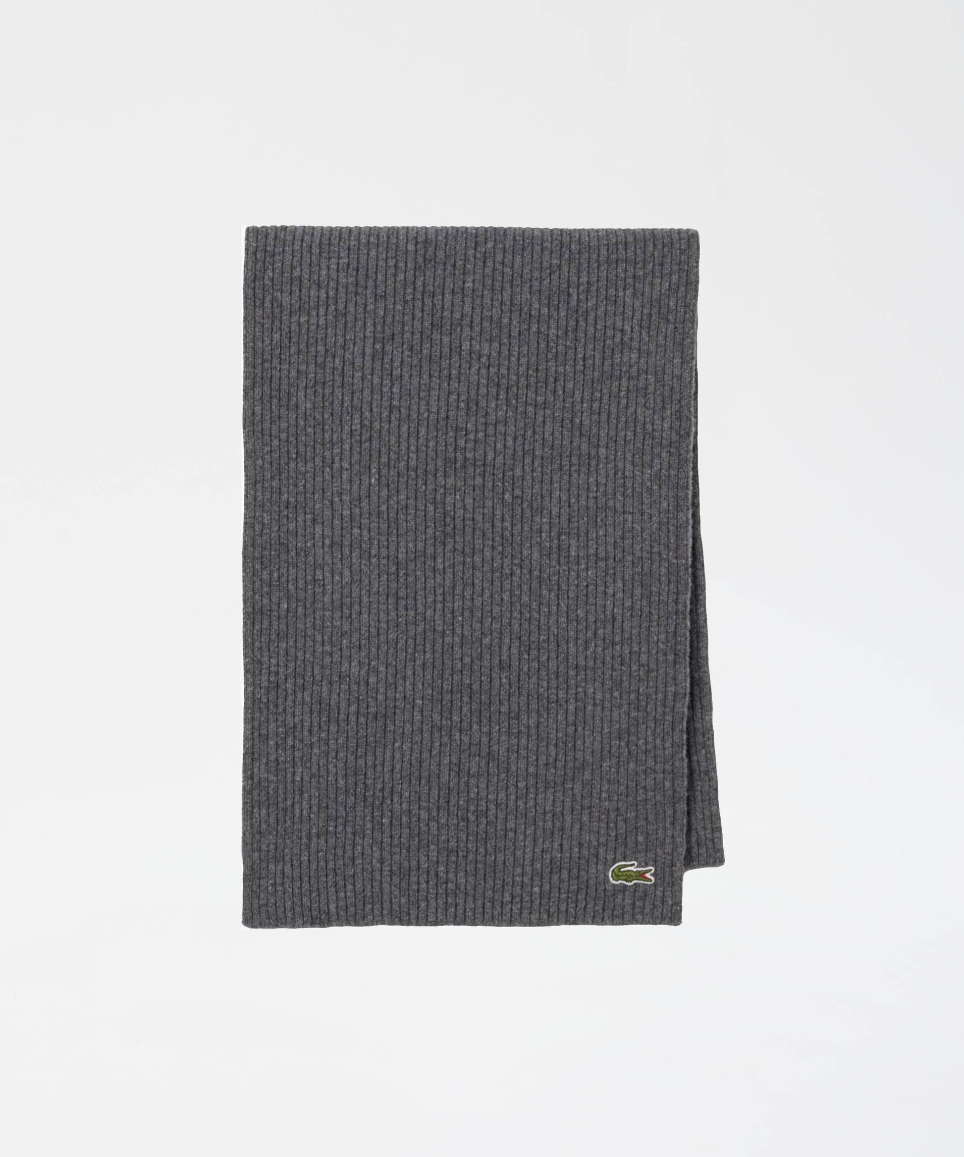 Sciarpa in lana responsabile Lacoste, calda e stilosa, con maglia a costine e iconico coccodrillo ricamato.