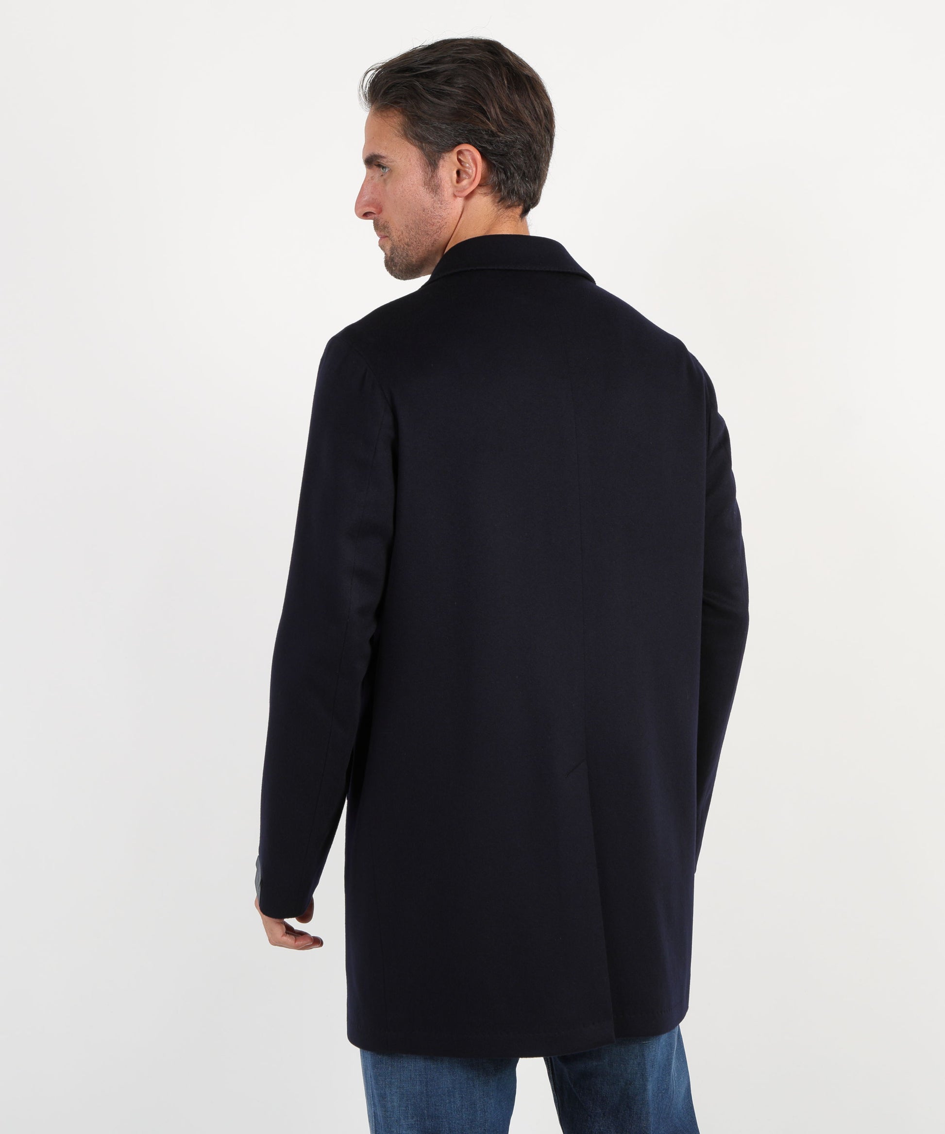 Cappotto inglese a cinque bottoni con collo a rever e tasche laterali. Un classico intramontabile, elegante e versatile.