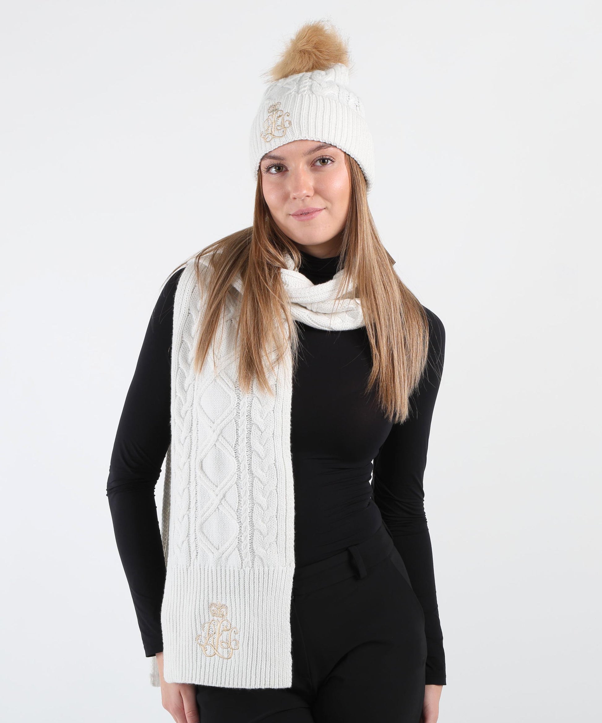 Un accessorio elegante e raffinato firmato Ralph Lauren. Questo cappello in maglia a coste presenta un bordo ripiegato che garantisce comfort e aderenza, impreziosito dal logo LRL ricamato in corsivo e decorato con strass e piccola corona sul risvolto. Il pompon in pelliccia ecologica aggiunge un tocco sofisticato e femminile, perfetto per completare i look invernali con stile.