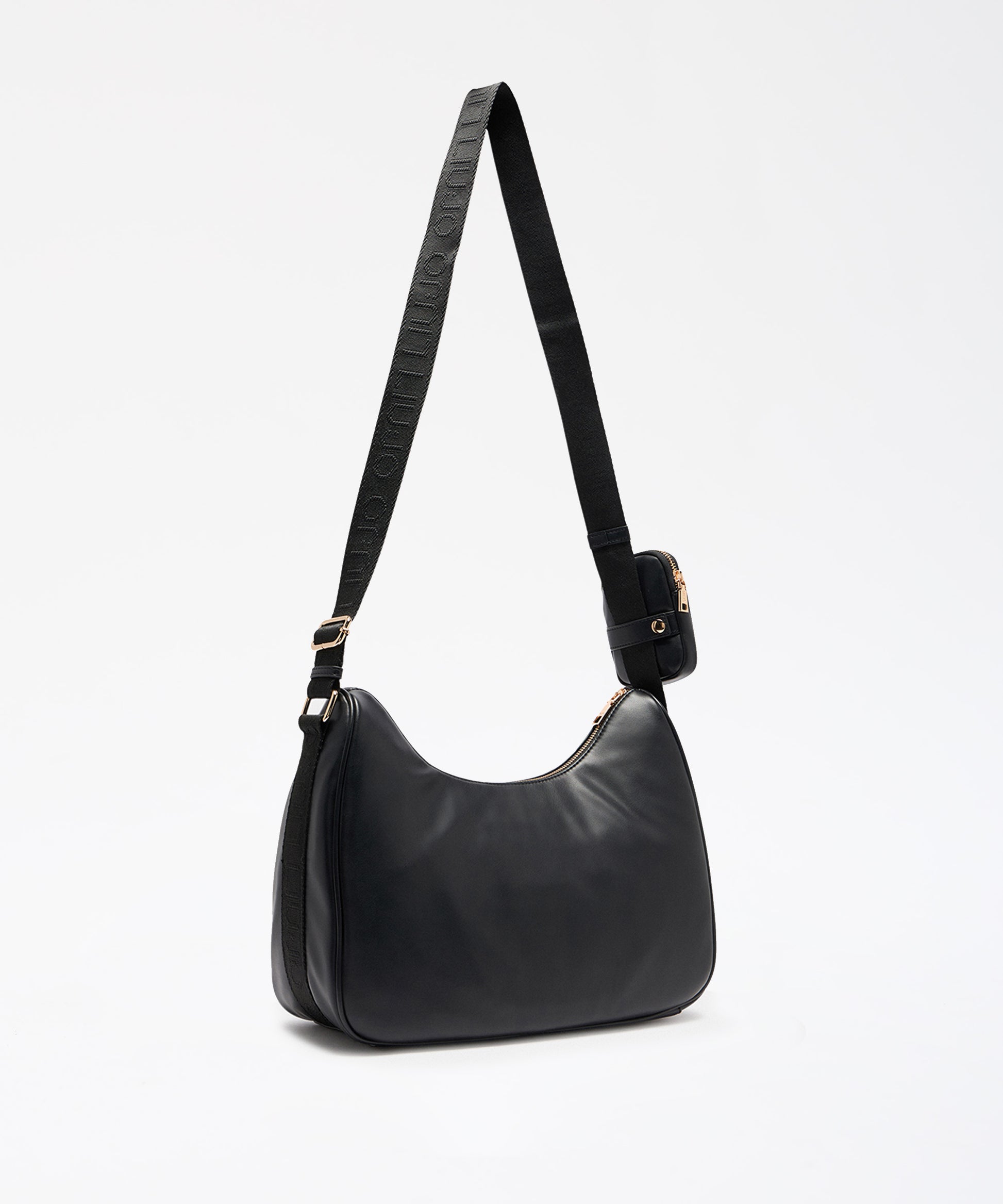 Elegante e funzionale, questa borsa a spalla in ecopelle dal design morbido è perfetta per completare look quotidiani con stile. La tracolla larga in tessuto logato garantisce comfort, mentre la tasca frontale con zip e dettaglio catena aggiunge praticità e un tocco di carattere. Il logo metallico applicato sulla parte frontale e il mini borsellino coordinato rimovibile con logo stampato conferiscono raffinatezza e versatilità.