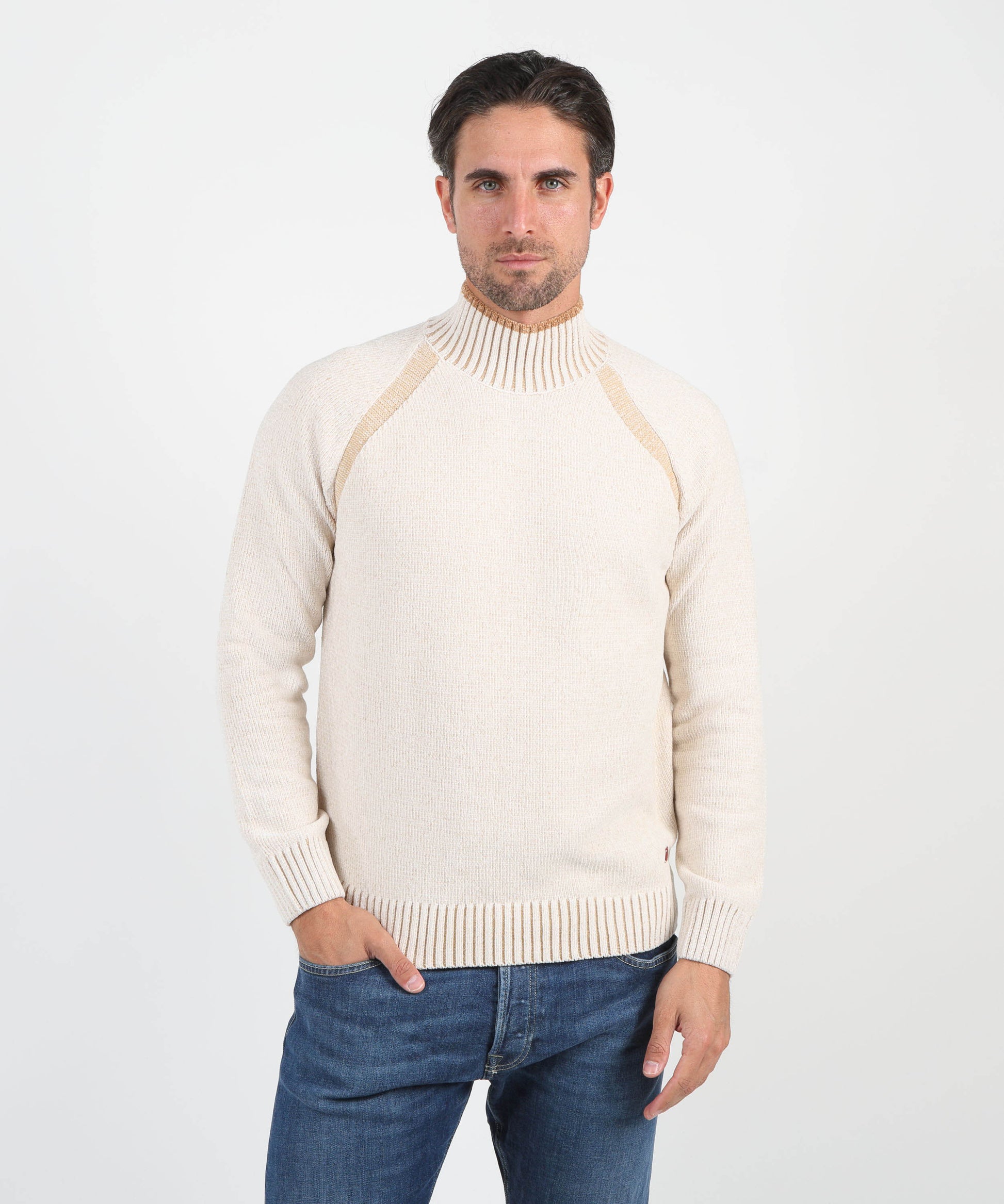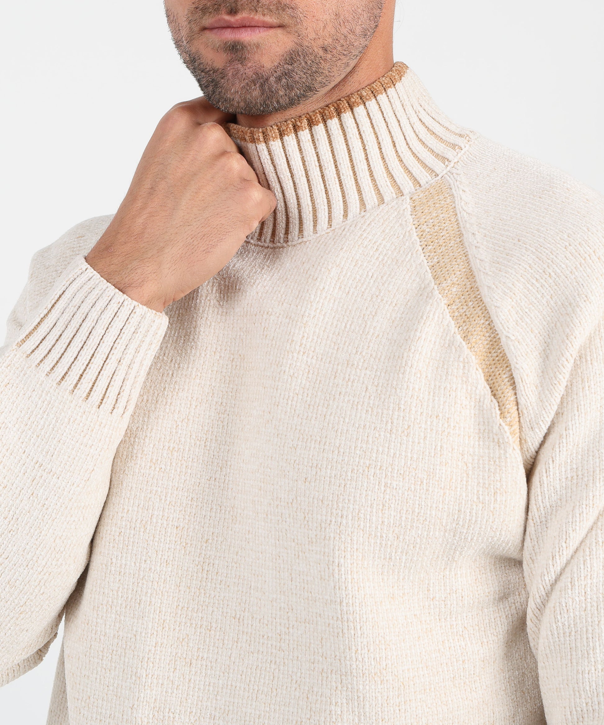 Maglia Bianca in Ciniglia con Collo Alto e Maniche Raglan