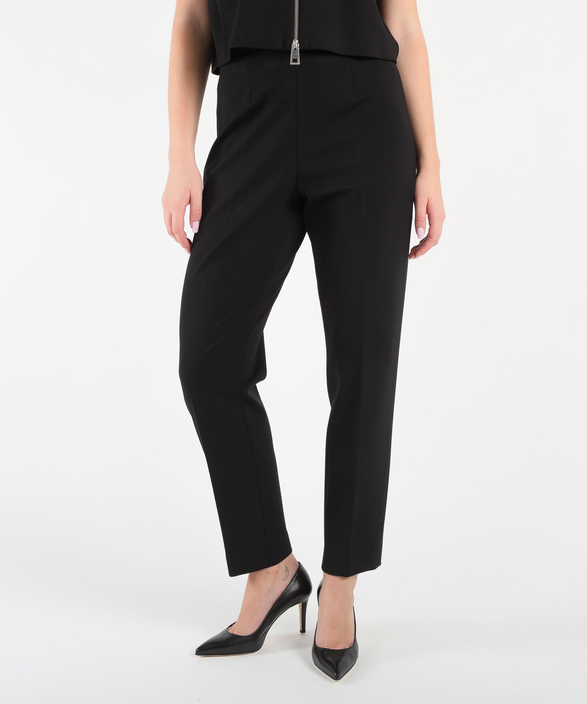 Pantalone sigaretta in punto Milano dalla linea aderente e minimalista, con vita media elastica e lunghezza alla caviglia. Design essenziale senza tasche visibili, versatile per look eleganti e casual-chic.