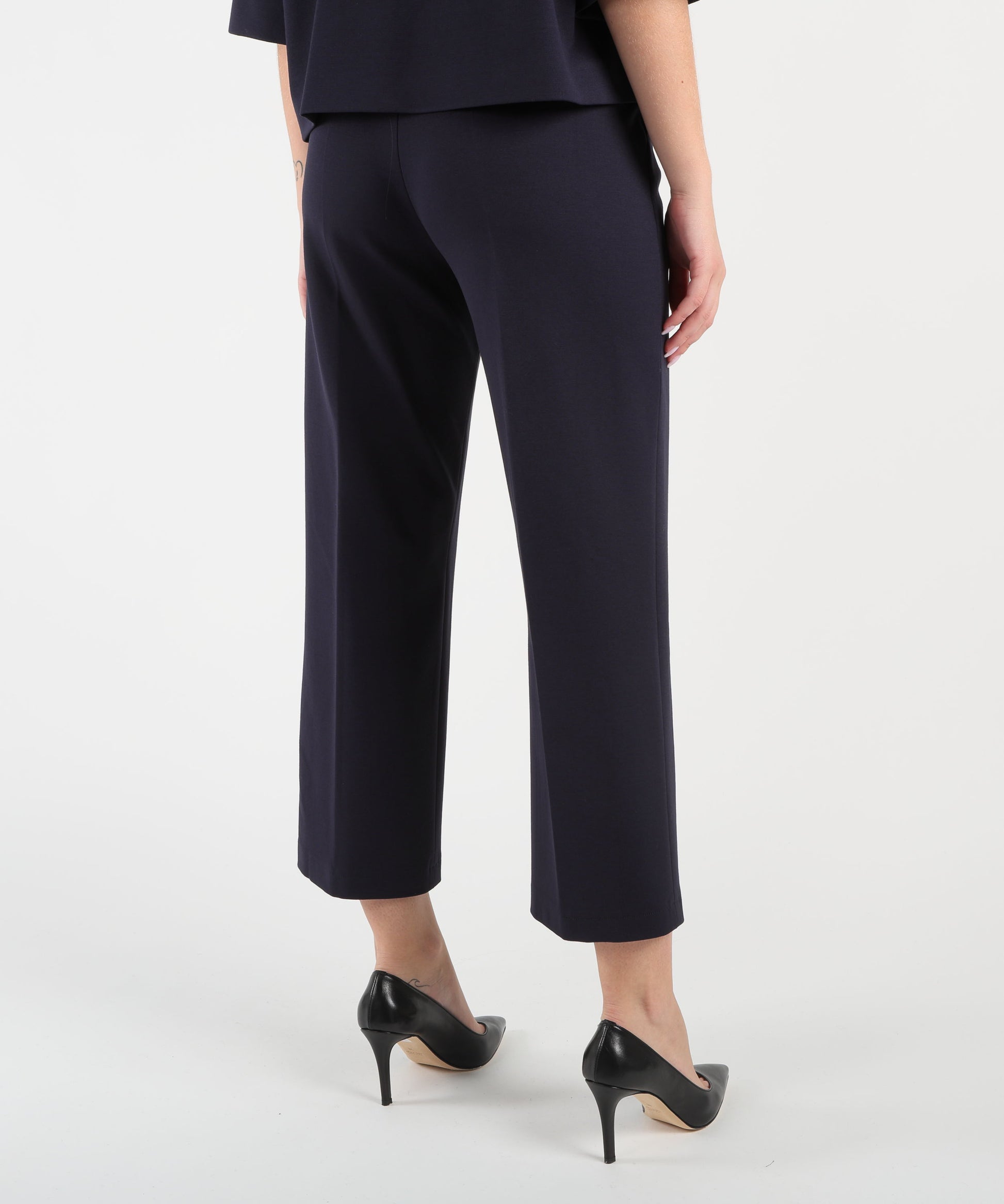Pantalone dritto in punto Milano con vita elasticizzata e tasche laterali nascoste. Linea minimal ed essenziale, lunghezza alla caviglia per un look elegante e versatile.