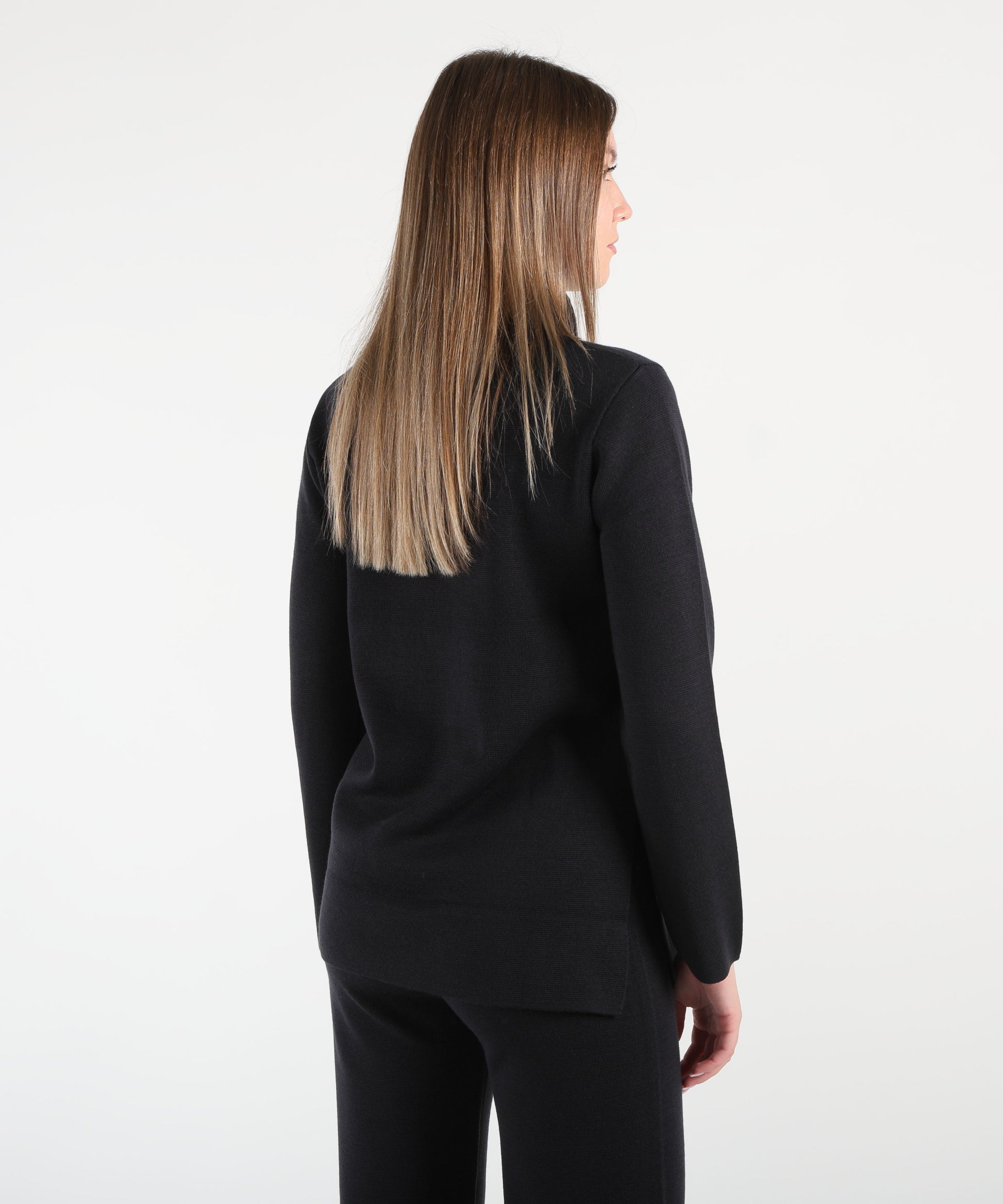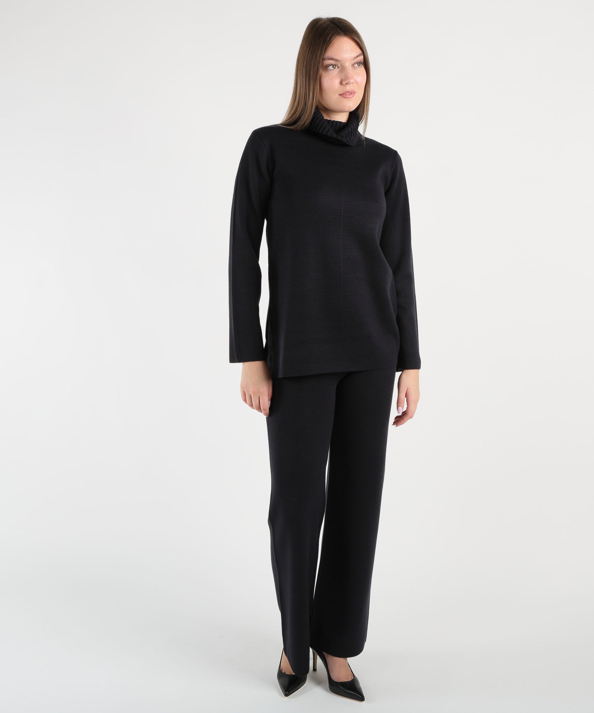 Descrizione breve Maglia dolcevita dalla vestibilità regolare con giro manica classico e spacco laterale sul fondo destro. Un capo minimal e raffinato, perfetto per look eleganti e versatili.