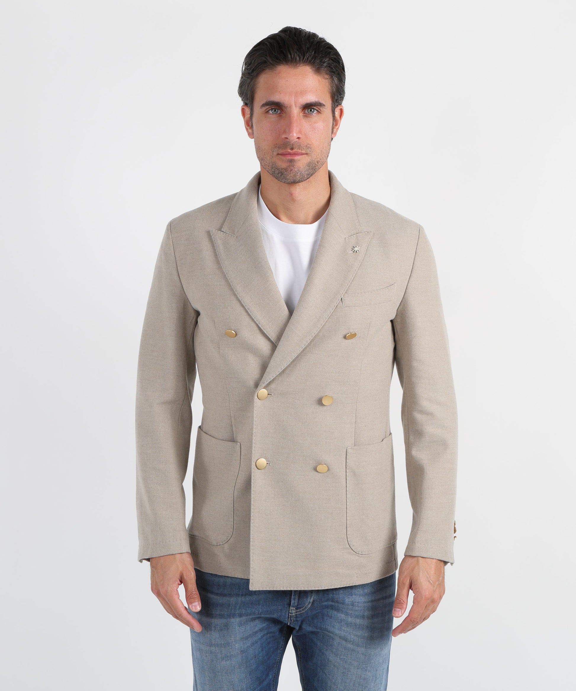Giacca doppio petto Manuel Ritz, elegante e versatile, con materiali di alta qualità e taglio strutturato. Ideale per look formali o business raffinati.