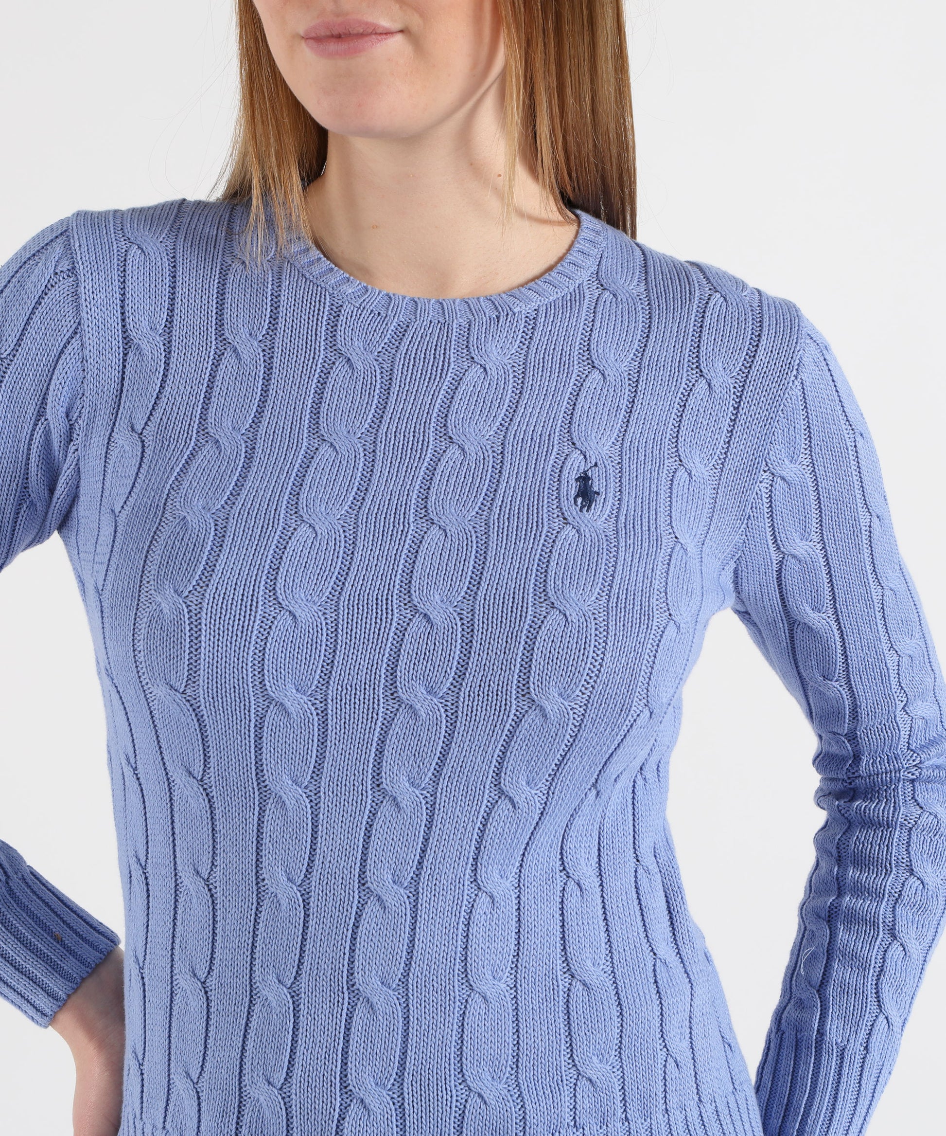 Maglione Polo a collo rotondo in cotone traspirante, con costruzione a trecce, maniche lunghe, polsini e orlo a costine, e ricamo Pony sul petto. Elegante, sottile e versatile per look casual o smart casual.