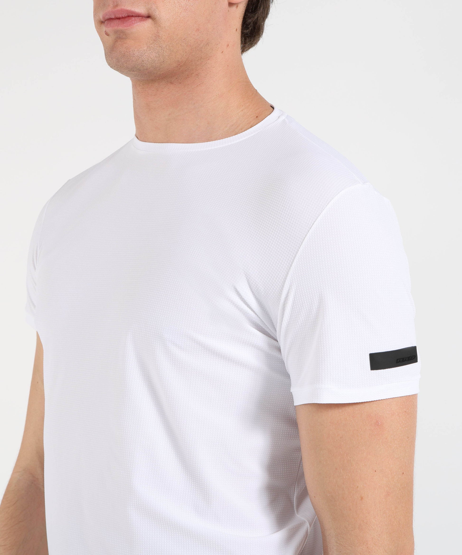 T-shirt estiva in tessuto elasticizzato e traspirante con lavorazione a rilievo effetto seersucker square. Vestibilità regolare con micro spacchi laterali, dettagli fluo e logo distintivo per uno stile sportivo e contemporaneo.