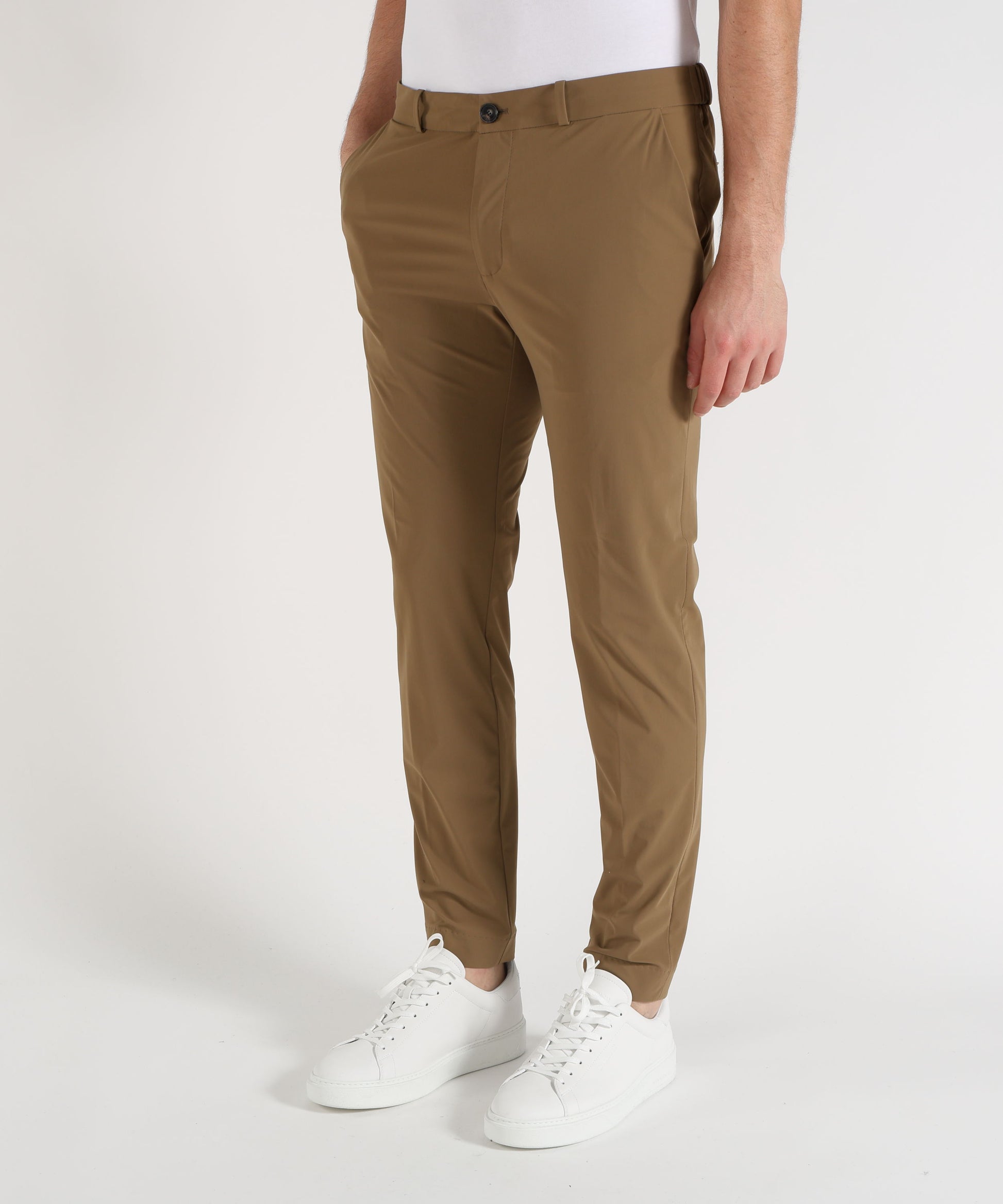 Chino uomo in tessuto stretch SURFLEX® leggero e traspirante, con vita elasticizzata regolabile, tasche funzionali e logo distintivo. Fit regolare, antipiega e no-stiro, perfetti per uno stile urbano contemporaneo e versatile.