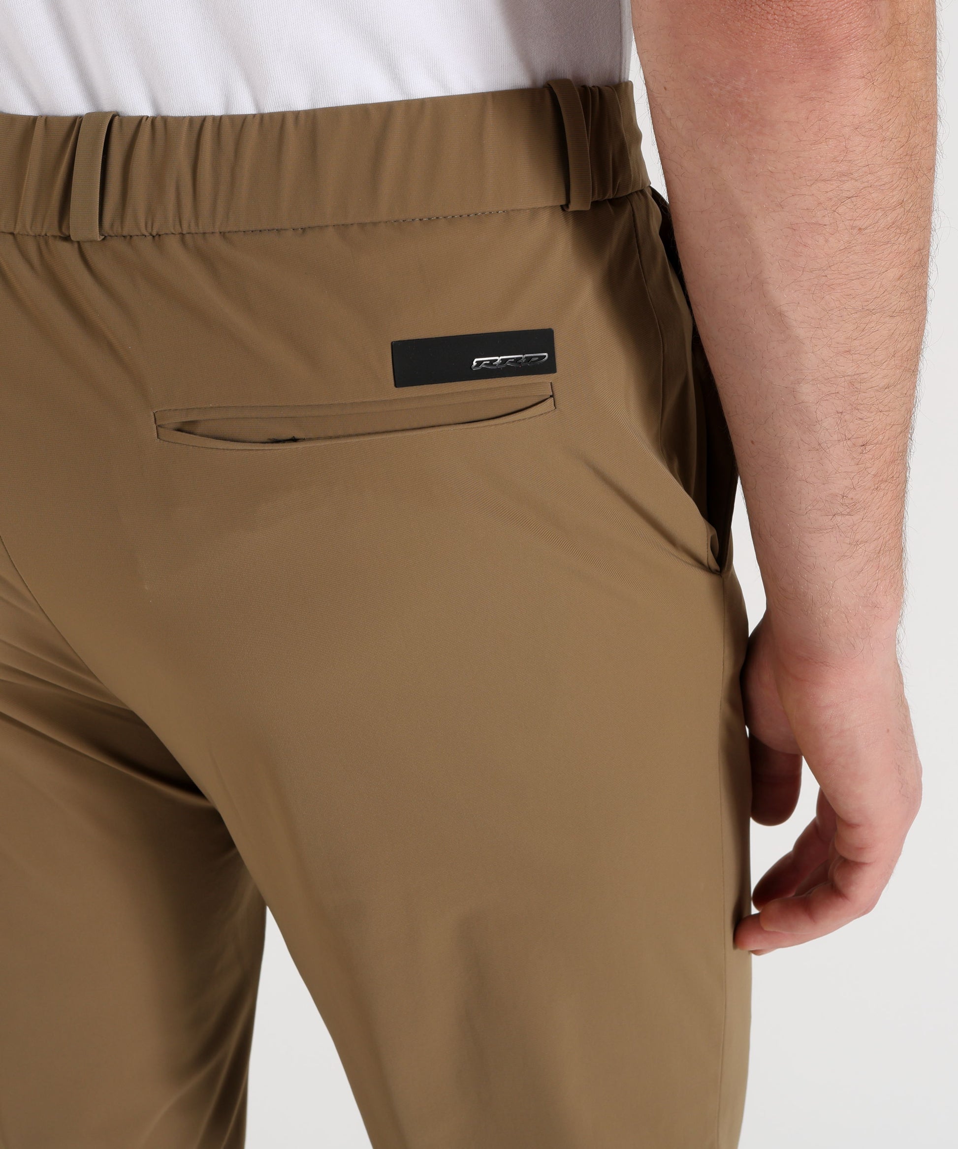Questi chino incarnano un’attitudine urbana contemporanea, con linee minimaliste e una vestibilità confortevole. La cintura a passanti elasticizzata è regolabile tramite coulisse interna con finalini gommati, un dettaglio funzionale che mantiene pulizia estetica e praticità. La fascia interna stampata con il monogramma Razzle Dazzle tono su tono aggiunge un tocco distintivo e sofisticato. Il davanti presenta tasche laterali alla francese e una chiusura con bottone in corno e zip nascosta dalla pattina, mentre le tasche posteriori a filetto sono valorizzate dal logo a microiniezione nero sul lato destro. Realizzati nell’esclusivo tessuto stretch SURFLEX®, leggero e traspirante, dal look super opaco e dalla mano morbida e liscia, questi chino a vita media e fit regolare garantiscono freschezza, libertà di movimento e comfort tutto il giorno. Le proprietà antipiega e no-stiro li rendono ideali per la quotidianità dinamica e perfetti come compagni di viaggio nella bella stagione. Scheda Tecnica