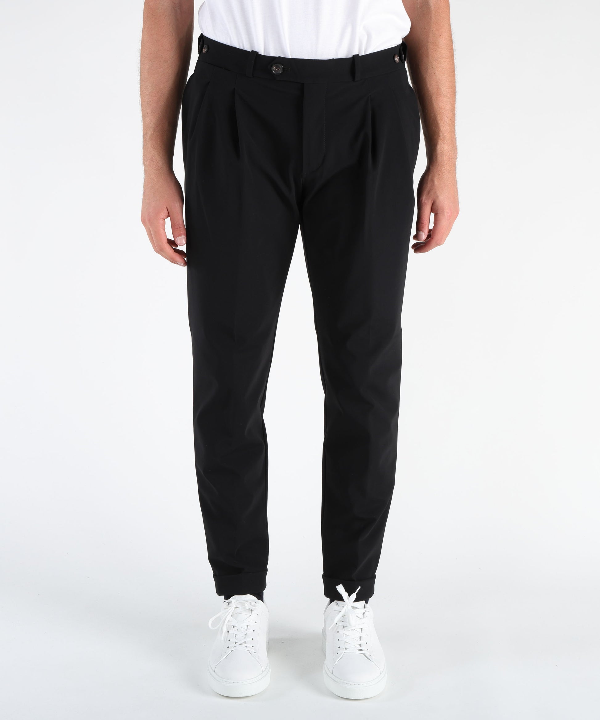 Chino invernali RRD in SURFLEX® elasticizzato, fit regolare con pince frontali, fondo risvoltato e dettagli sartoriali. Tasche laterali e posteriori con logo, perfetti per look casual raffinati.