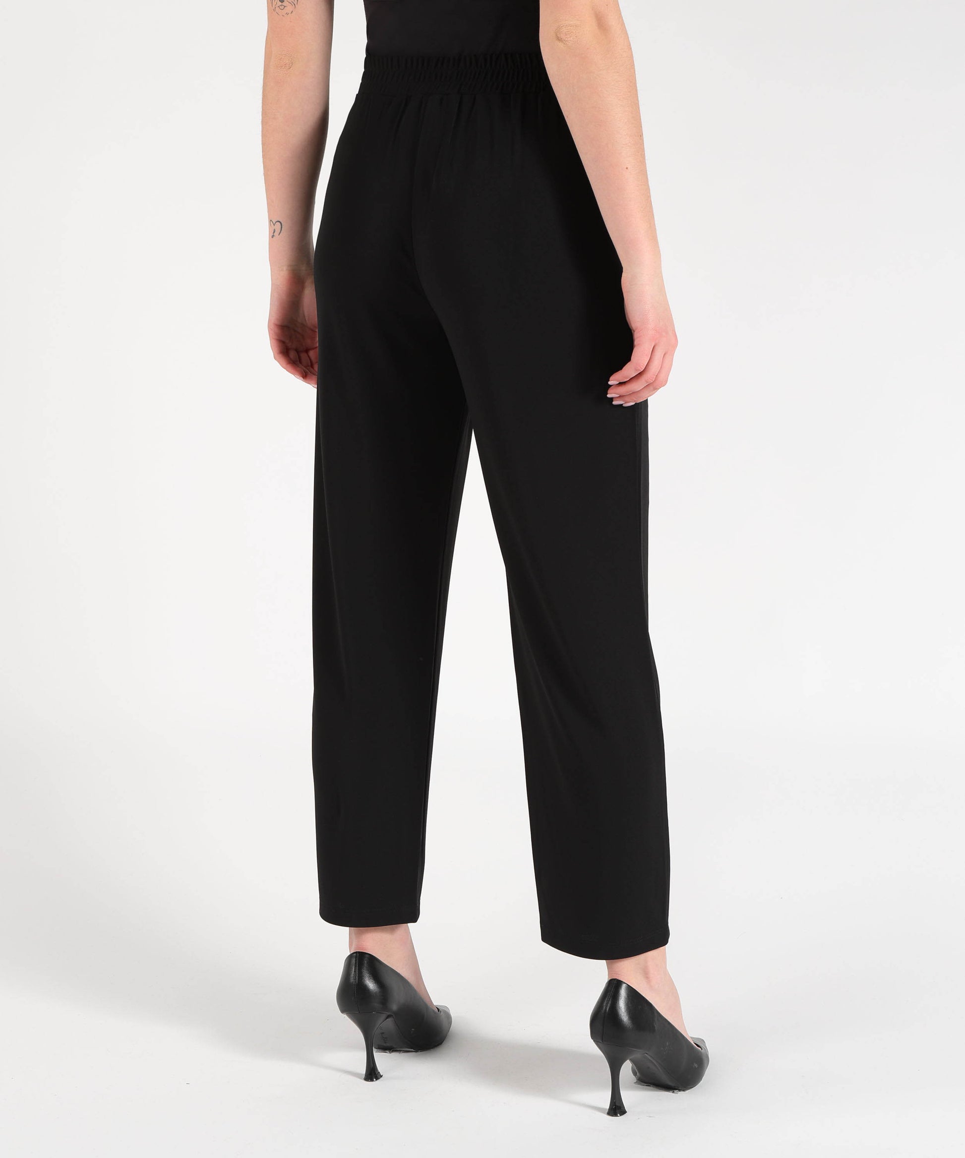 Comodo e versatile, questo pantalone da donna presenta una linea morbida sul corpo e più stretto sul fondo, valorizzando la silhouette senza rinunciare al comfort. La molla in vita solo sul retro garantisce una vestibilità regolabile e confortevole. Perfetto da abbinare a top, camicie o t-shirt per look casual, quotidiani o casual-chic. Caratteristiche principali