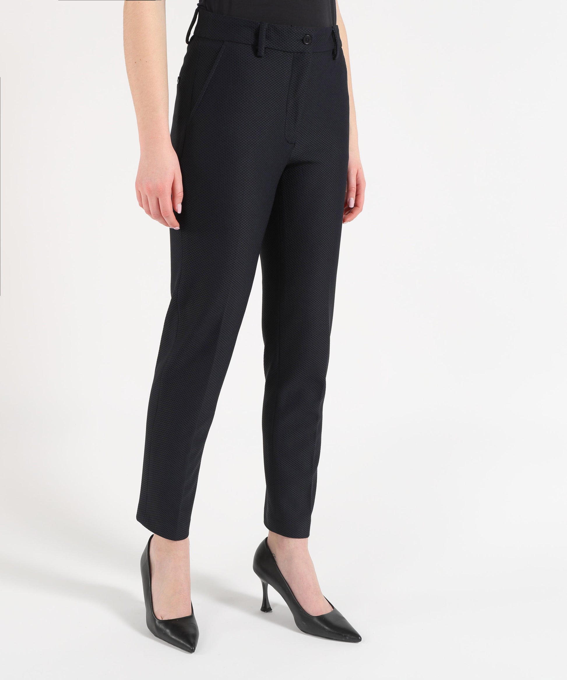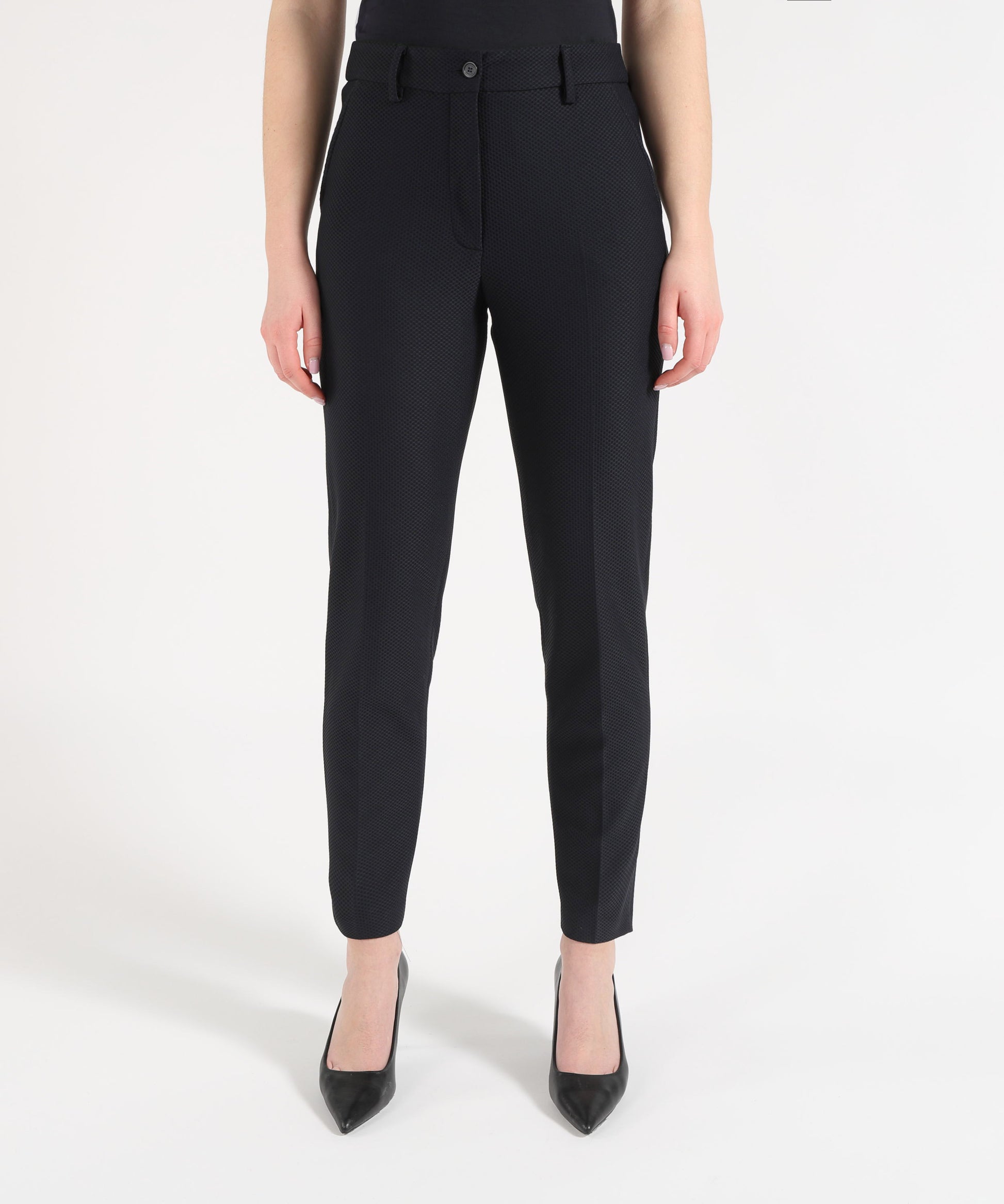 Eleganti e versatili, questi pantaloni a sigaretta valorizzano la silhouette con una linea aderente e raffinata. Il design minimal è arricchito da tasche finte a filo sul davanti e tasche laterali funzionali, per un equilibrio perfetto tra stile e praticità. Ideali da abbinare a bluse, blazer o top eleganti, sono perfetti per look formali, smart casual o outfit da ufficio contemporanei. Caratteristiche