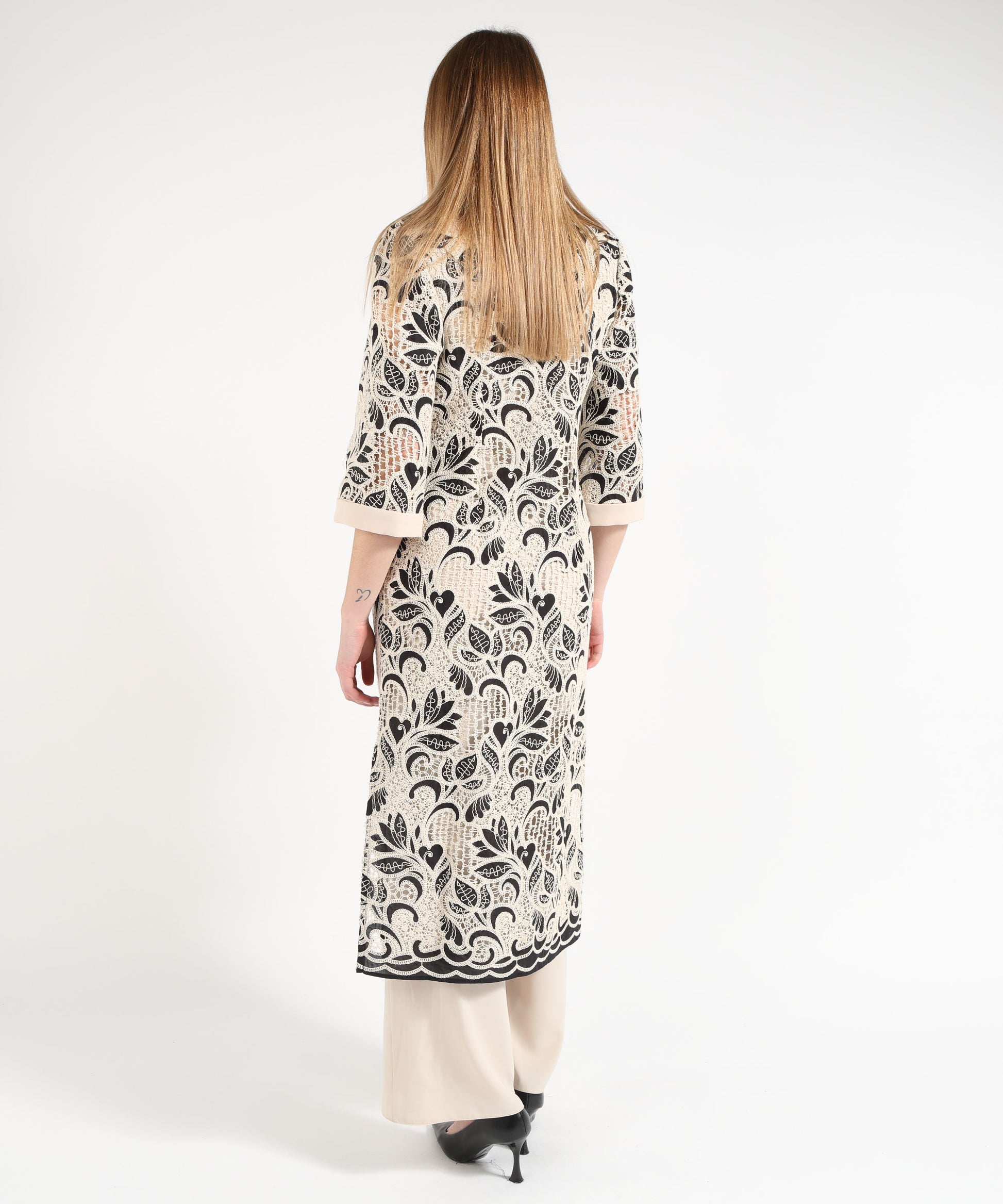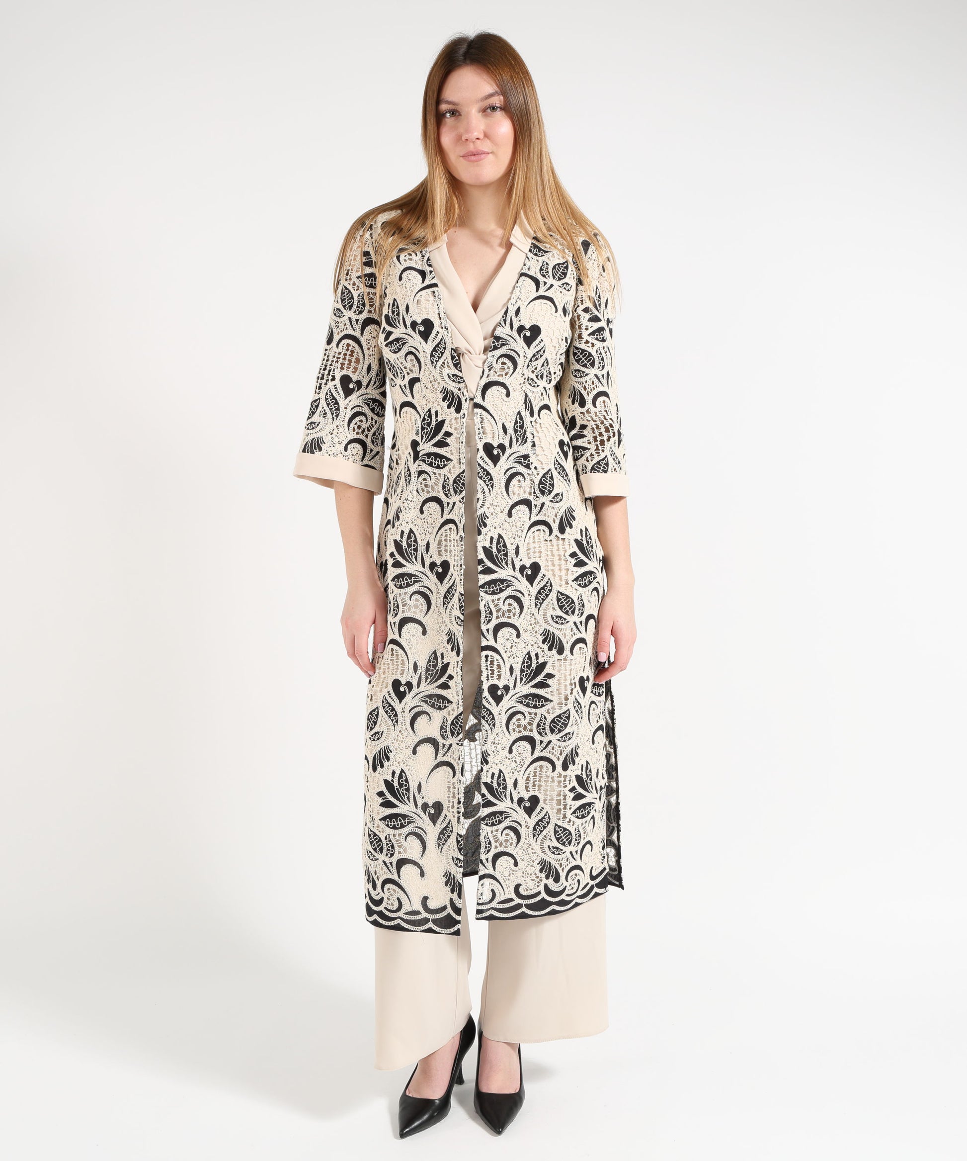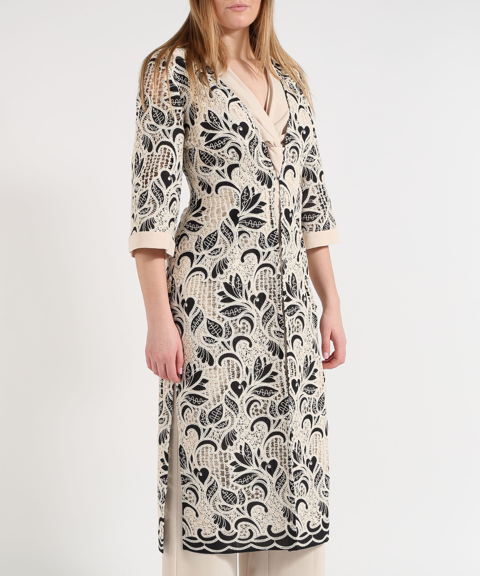 Spolverino in tessuto intagliato con fantasia floreale