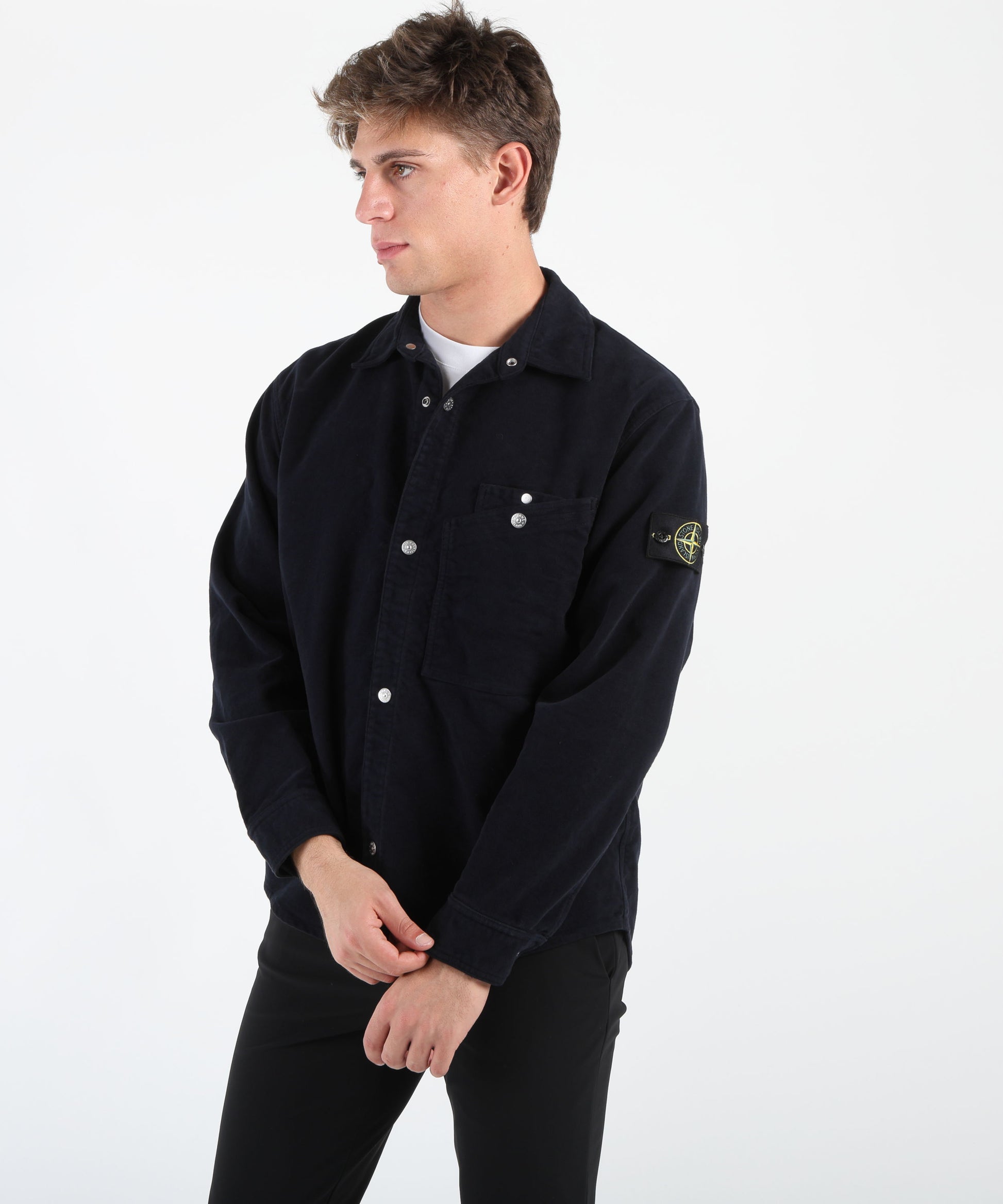 Overshirt Stone Island in fustagno di cotone tinto in capo, con tasche funzionali, polsini regolabili e badge iconico sulla manica, perfetta per look casual e urbani.