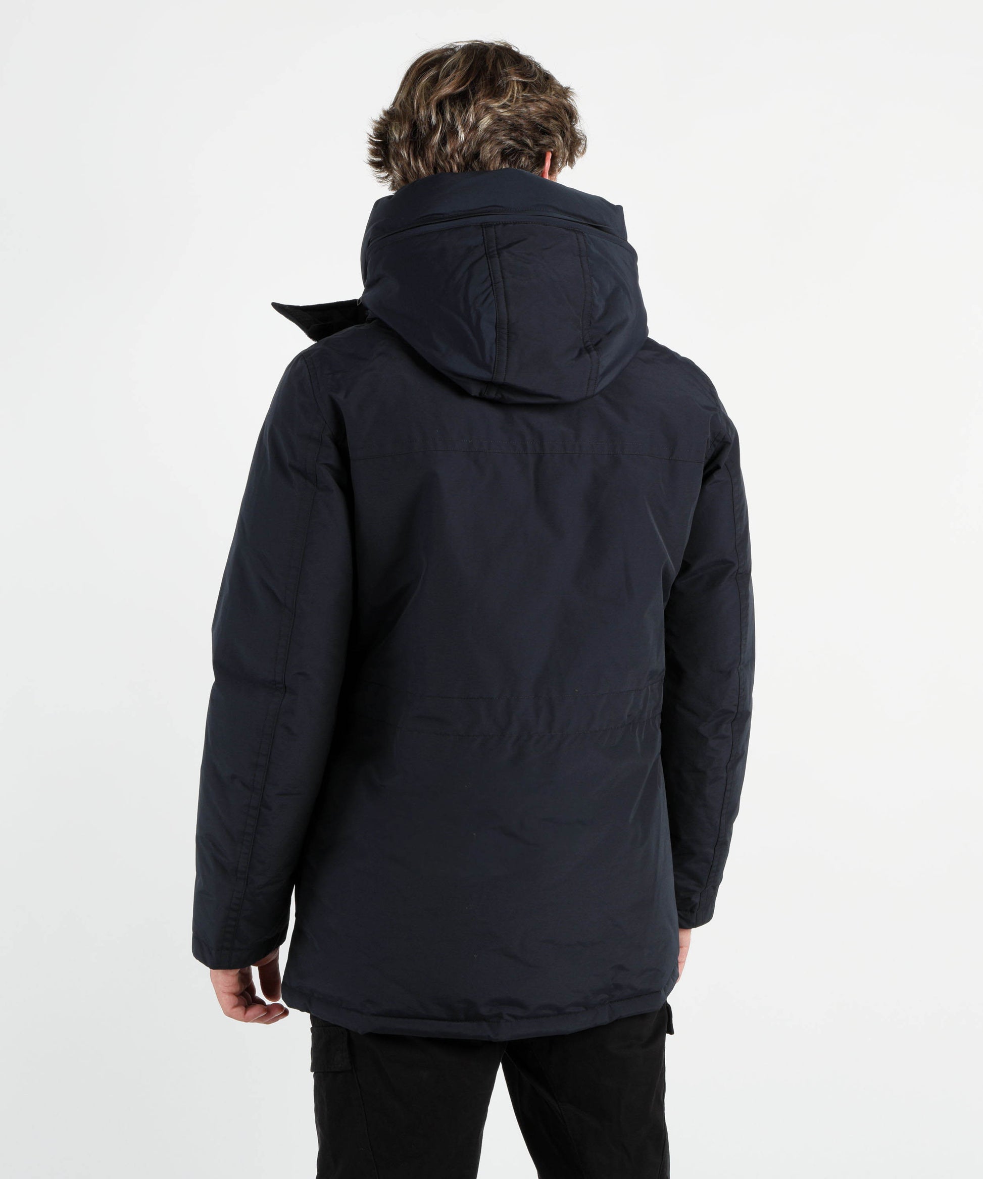 Composizione: Cotone Poliammide Piuma Descrizione : Realizzato in tessuto Ramar Cloth; Resistente all'acqua e al vento; Imbottito in piuma d'anatra 90/10; Cappuccio protettivo; Chiusura con zip e bottoni; Tasche scaldamani; Tasche applicate con patta con bottoni; Tasche interne; Polsini interni a costine. Colore: Bianco Size & fit: Vestibilità regolare.